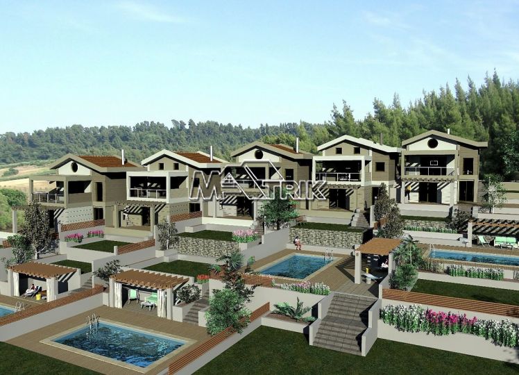 Chalkidiki Kryopigi. Complex with 10 maisonette of two levels and sofitas, 130 sq.m. each, 1300sqm at the total, 750 meters from the beach with panoramic view all the area.