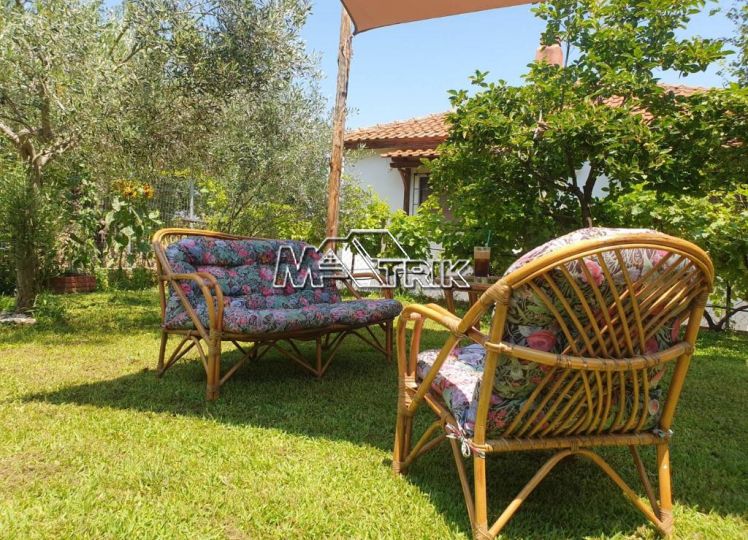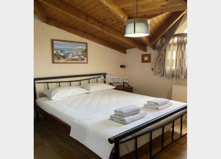 Chalkidiki, Flogita, complex of three apartments 193 sqm, on a plot of total area of 950 sqm. Each apartment (ground floor-first floor-attic) consists of two bedrooms, a living room- kitchen and one bathroom. They have aluminum window frames with double glazing, recoil and nets, tiled and laminate floor, armored door, fireplace, a/c, individual heating, solar water heaters, awnings, bbq, comfortable balconies around the apartments, exclusively used courtyard of approximately 120 sqm where the garden is surrounded with an entirety of ornamental plants and fruit trees and three exclusive parking spaces. It is located in an extremely quiet area and its distance from the nearest beach of Flogita is 1.2 km.