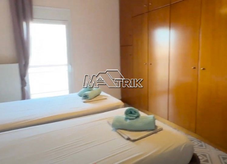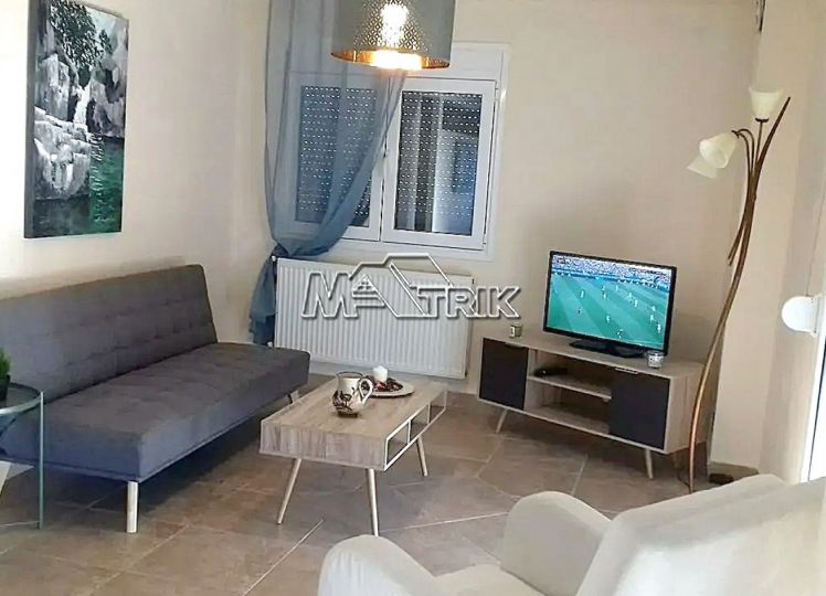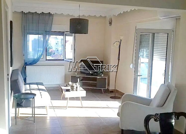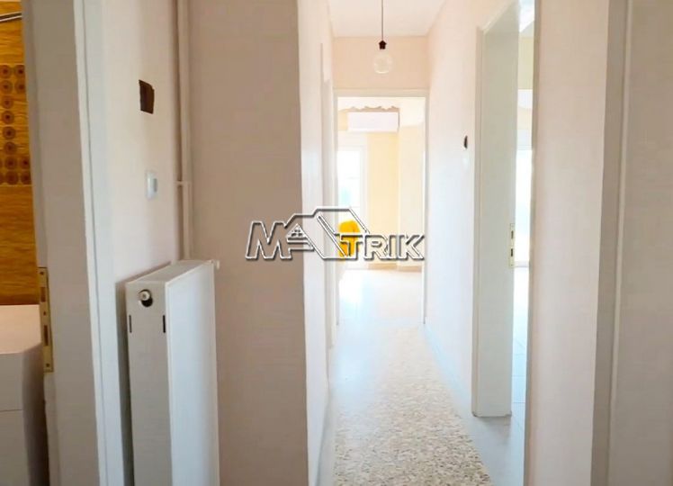 Chalkidiki, Nea Kallikratia, renovated apartment of 90 sqm, on the third floor in an apartment complex. It consists of three bedrooms, a living room - kitchen and one bathroom. It has aluminum wiNdow frames with double glazing, recoil and nets, tiled floor, armorized door, individual oil heating system, two a/c, it has large balconies with a facing on three sides, as it is fully furnished and equipped with all electrical appliances. It is located in a particularly quiet location and its distance from the sea is 600m.