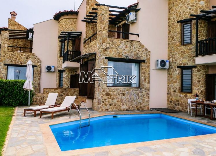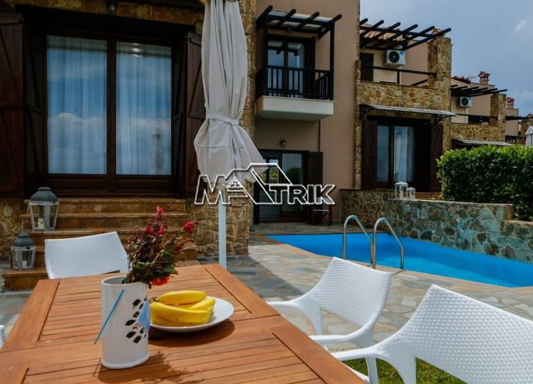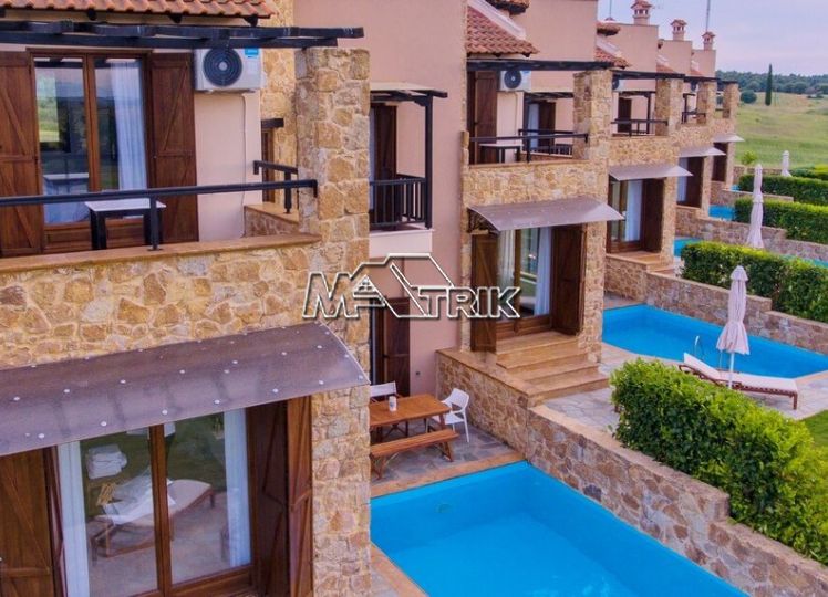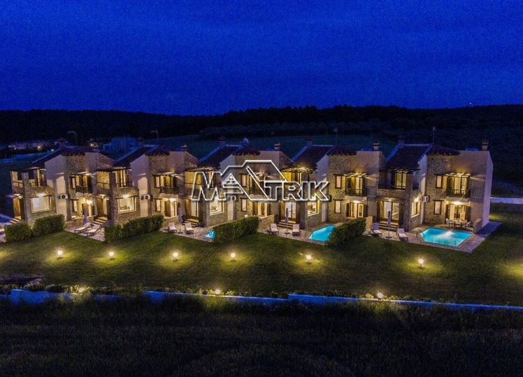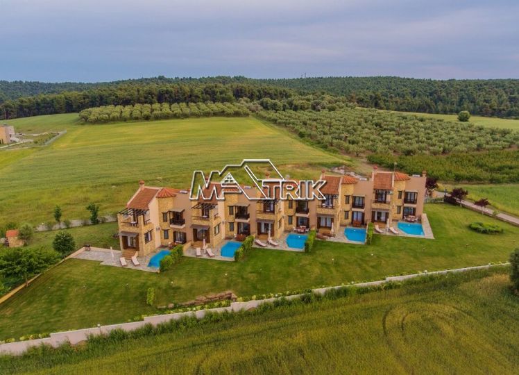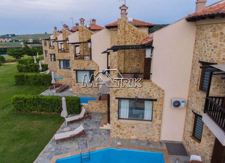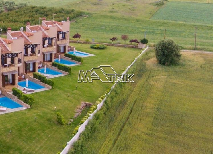 Chalkidiki, Sani, residential complex consisting of five maisonettes of 120 sqm each on a plot of total area of 4761 sqm. Each maisonette consists of three bedrooms, a kitchen- living room, one bathroom and a wc, and has aluminum window frames with double glazing, recoil and nets, tiled floor, armorized door, three a/c, individual oil heating system, fireplace, solar water heater, storage room, private pool, parking spaces with a shed, exclusive 50 sqm yard, common green areas, and each maisonette is fully furnished and equipped with all electrical appliances. The entire project is built with materials of excellent choice, it is located in a particularly quiet location and its distance from the Sani beach is 1.5km