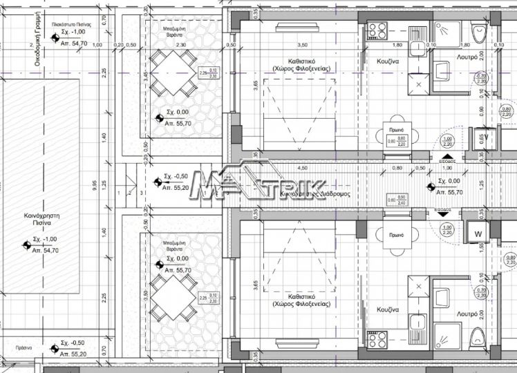 Kallithea, mezzanine apartment (raised ground floor on paper), 52 sq m., in a residential complex under construction, in a quiet neighborhood, 900, from the sea. The apartment consists of one bedroom, living room and kitchen and one bathroom. It has quality tiled floors, an armored front door, PVC window frames with double glazing and screens, air conditioning, solar water heater, exclusive courtyard of approximately 15 sq m. and one parking space. The option of building a swimming pool is given. The complex is being built according to the most modern techniques and the properties will have a high energy class. The completion of the project is estimated to be completed in December 2025.