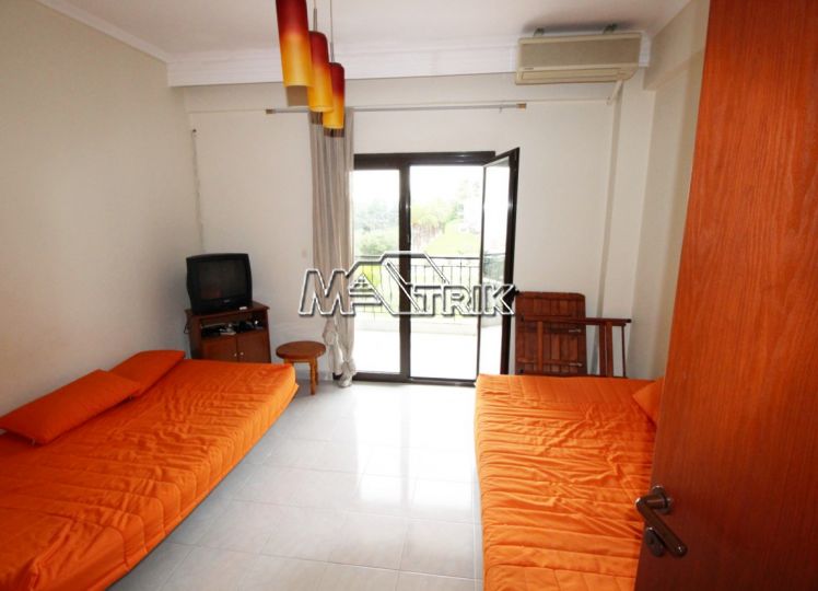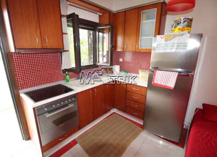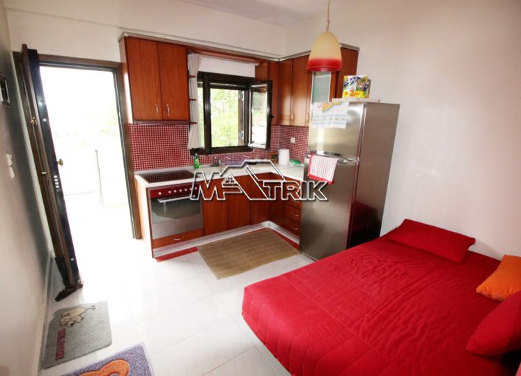 Chalkidiki, Kallithea, 2nd floor apartment, 35sq.m., bright and airy, in a residential complex 2km from Kallithea, very close to supermarkets, restaurants and hotels, just 250m from the beach. It consists of a living room with a kitchen, one comfortable bedroom and a bathroom with shower. It has a fully equipped kitchen with new furniture, aluminum frames and shutters with double glazing and screens, tiled floor, armored door, an air conditioner, large recessed closet, awning and a parking space on the ground level of the building. The comfortable balcony of the apartment offers a great views of the Toroneos gulf and the Sithonia peninsula. The complex has a large and very well maintained communal courtyard. The apartment is a very good choice as a holiday home as well as an investment for tourist use / development.