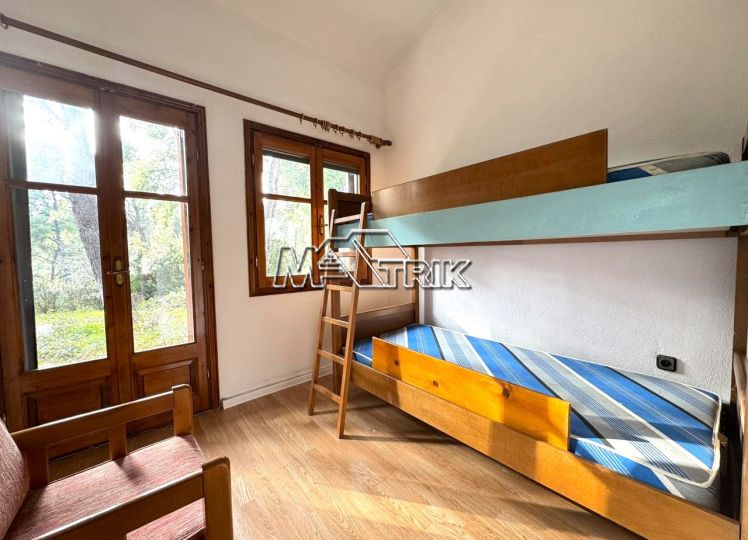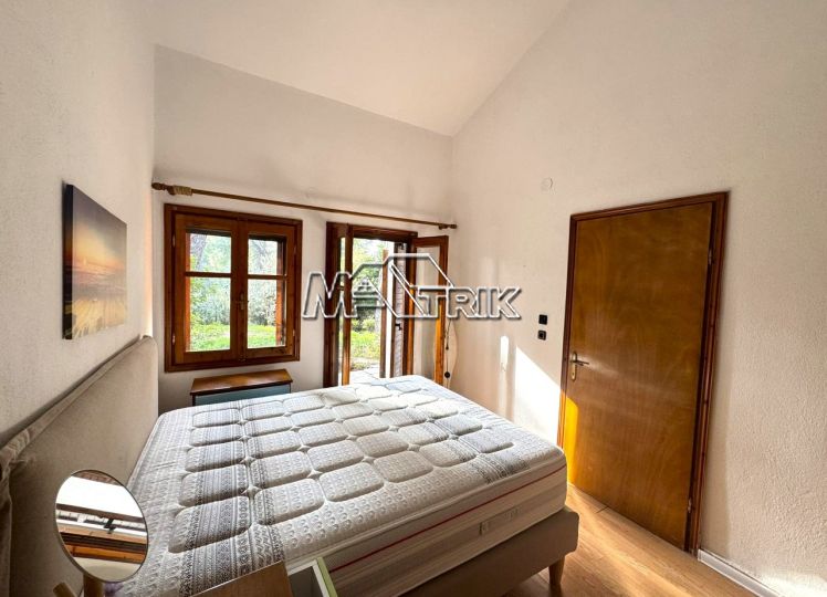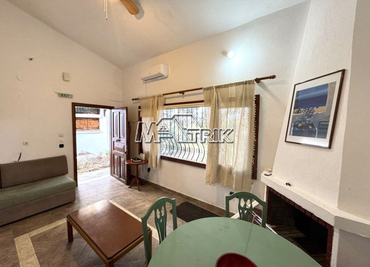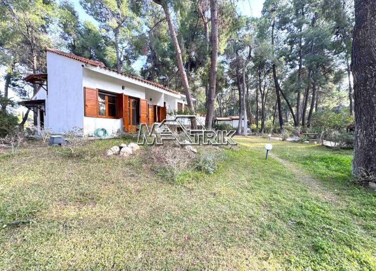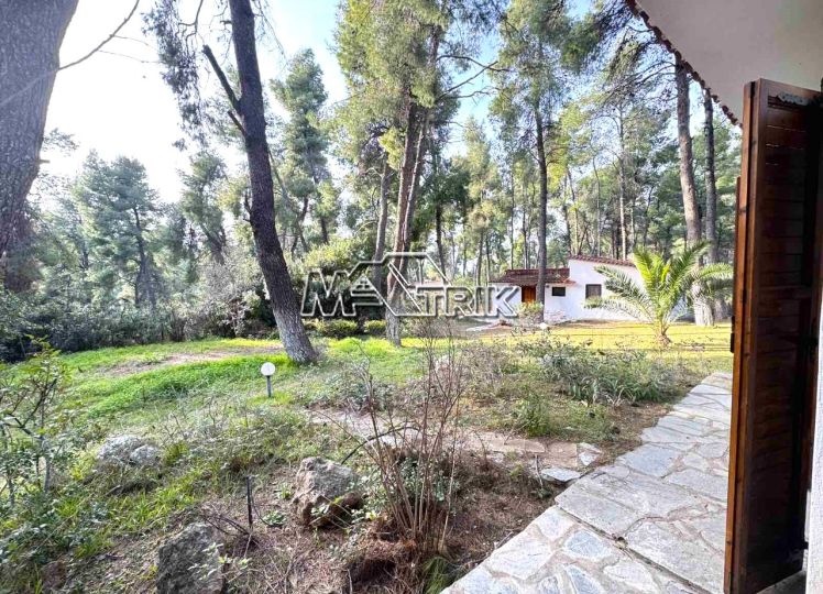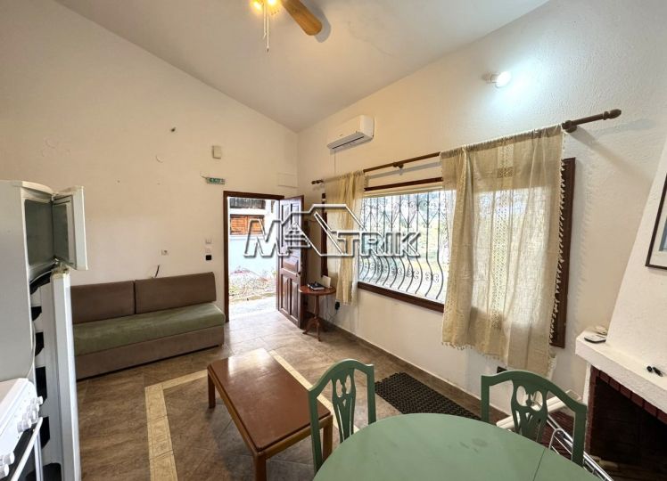 Chalkidiki, Sani, in the green forest of Sani, this detached house offers peace and tranquility. It consists of two rooms, a kitchen and living room and a bathroom. It has a fireplace, one a/c, a parking space, a barbecue in the yard, as it is fully furnished and equipped with all electrical appliances. it is located in an extremely quiet location and its distance from the facilities of Sani Resort is 800m.