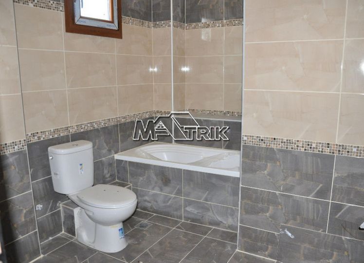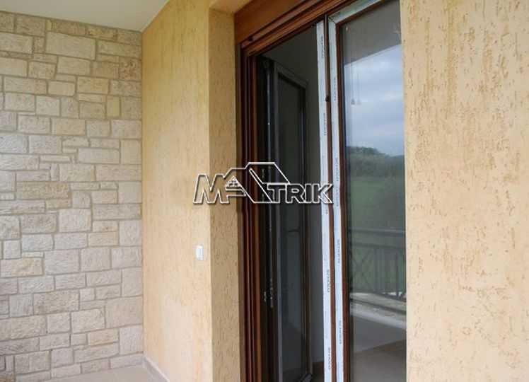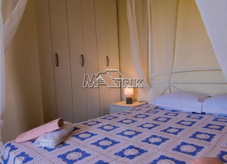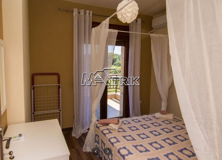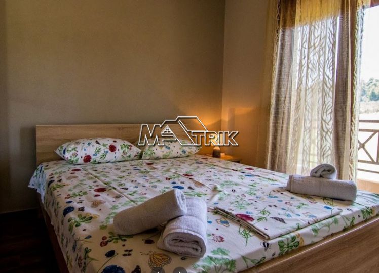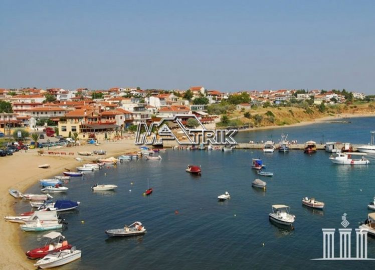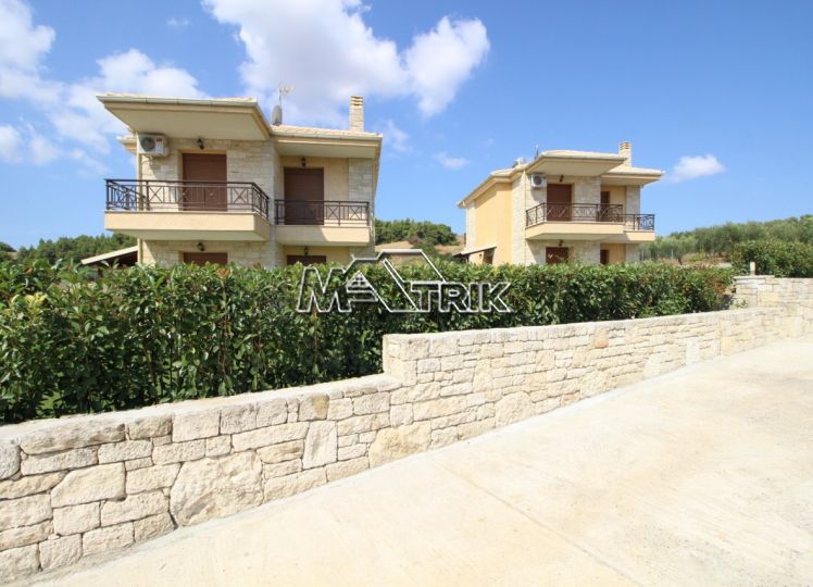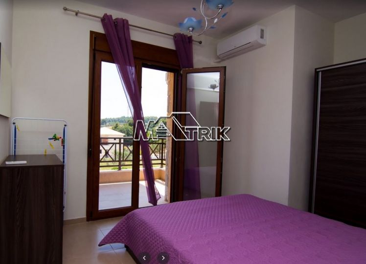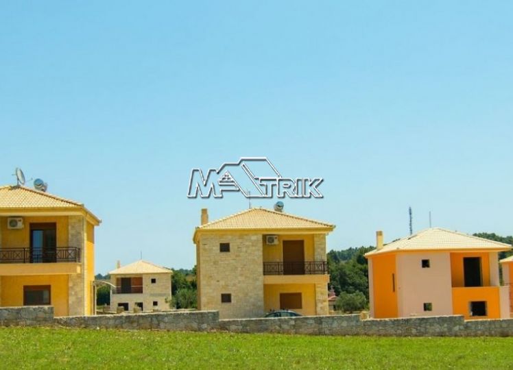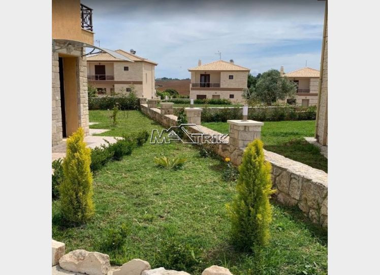 Halkidiki, Nea Fokaia. Detached houses (114m²)ground and first floor, 1000m from the sea and 500m from the village, 300 to 600m² landscaped garden of exclusive use, a storage room and parking spots. The houses are elegantly decorated with Athytos stone wall cladding and consist of a spacious kitchen/living room area with a fireplace, 3 bedrooms and 2 bathrooms. --Ground floor, with access to the garden, consists of the single plan kitchen/living room with the fireplace and one bathroom. --Upper level, with access to a wide veranda, consists of 3 bedrooms and the second bathroom. The houses have an installation of atomic oil heating, aluminum frames (new type) with fly screens, tile flooring, security entrance door, parking spots of exclusive use, storage rooms, bathrooms with bathtub and shower, installation of A/C and alarm plus wardrobes in the bedrooms.