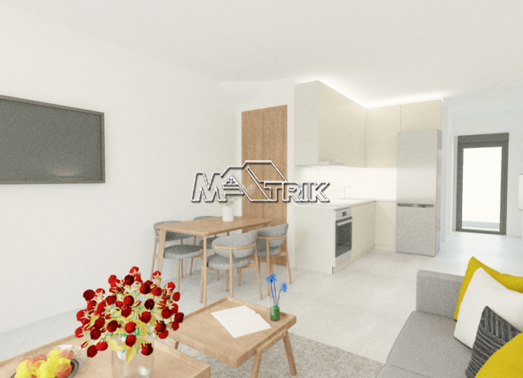 Nea Moudania, maisonette of 86 sq.m., on two levels, front and airy, in a residential complex under construction. It is located near the market area and the health center. It is approximately 300m from the city center and 550m from the sea. It consists of a spacious living room-kitchen area and a bathroom on the 1st level as well as two comfortable bedrooms and an additional bathroom on the 2nd level. The maisonette has tiled floors, aluminum window frames with retraction and double glazing, armored front door, heating infrastructure, comfortable balconies and storage space in the basement of the building. The complex will be completed in October 2025.