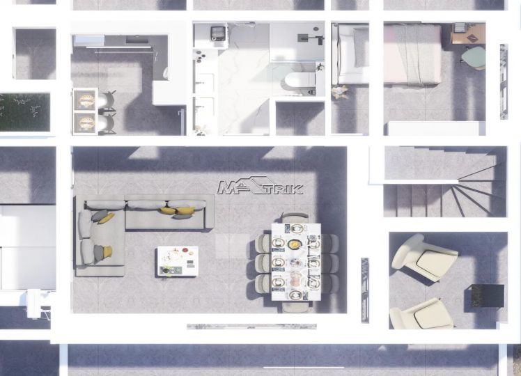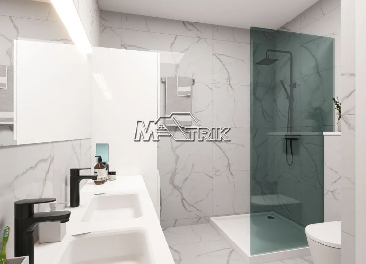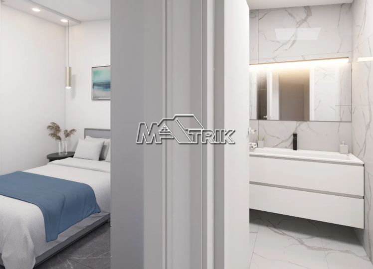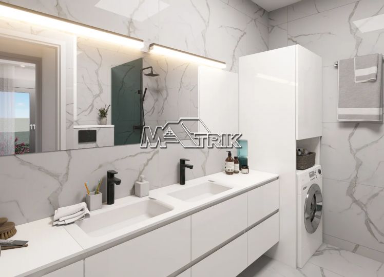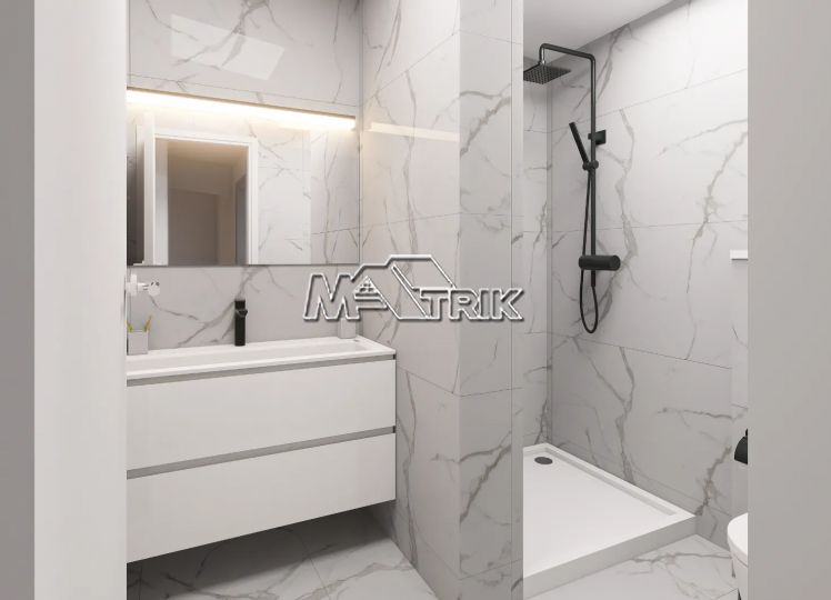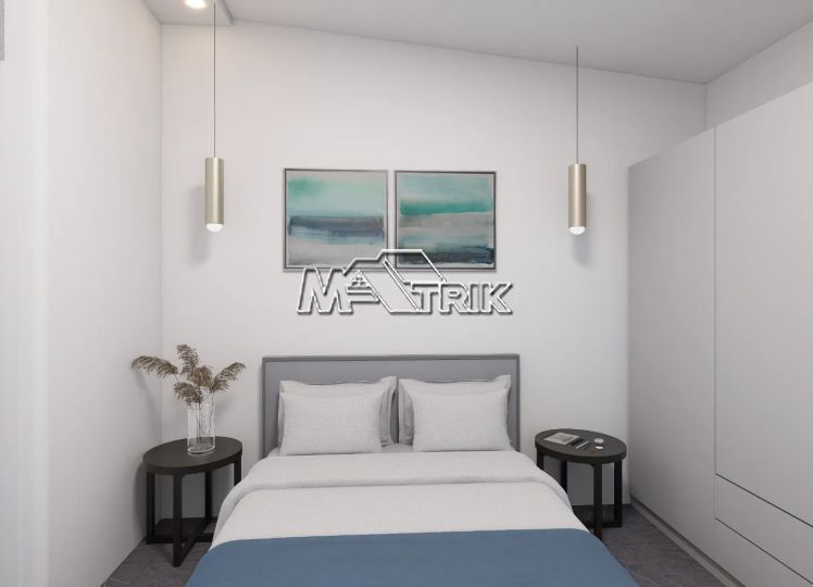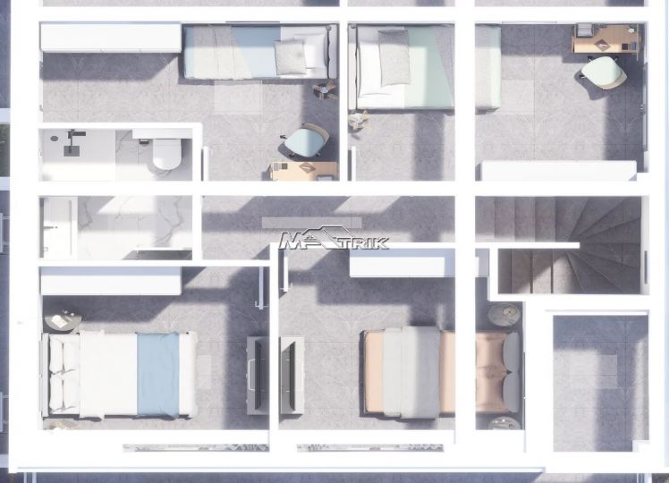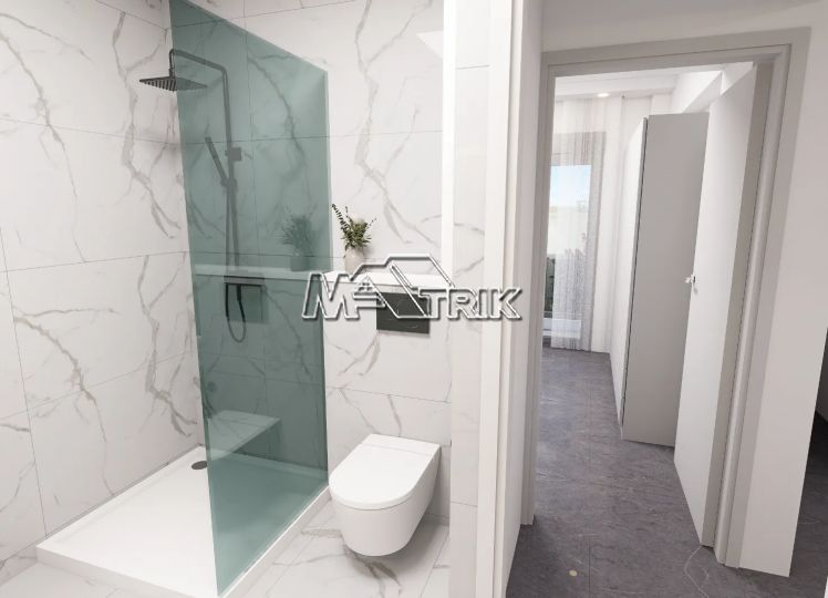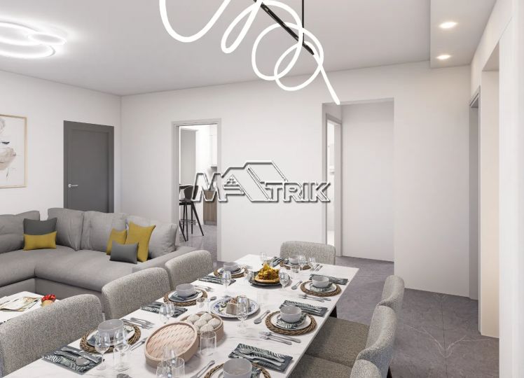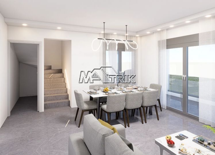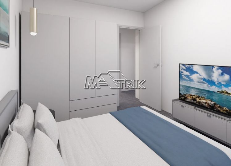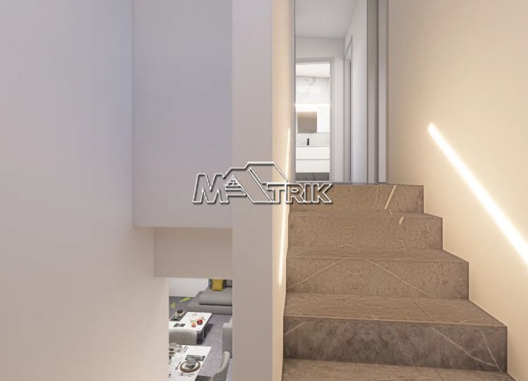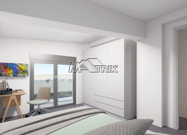 Chalkidiki, Nea Moudania, under construction 125sm maisonette on the first floor in a residential complex. It consists of five bedrooms, a kitchen-living room and two bathrooms. It has aluminum window frames with double glazing, recoil and nets, tiled floor, armorized door, underfloor heating system with heat pump, storage room, solar heaters, thermal façade and waterproofing and one parking space for exclusive use. It is extremely bright and airy, it is located in a particularly quiet area and the distance from the sea is 700m.