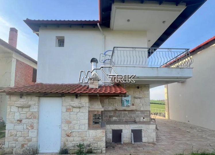 Chalkidiki, Nea Potidaia, maisonette 104 sqm on a plot of total area of 500 sqm. It consists of two bedrooms, living room,- kitchen and two bathrooms. It has aluminum window frames with double glazing, recoil and nets, tiled floor, armorized door, two a/c, fireplace, outdoor storage, built-in bbq in the yard, two parking spaces for exclusive use, exclusive yard of approximately 400 sqm, as it is fully furnished and equipped with all electrical appliances. This is a settlement in an extremely quiet location and the distance from the sea is 800m.