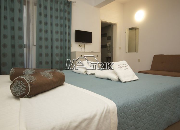 Metamorfosi, residential complex into the village 150 meters from the beach. They consist of 7 fully equipped studios with the ability to accommodate up to 3 people, 1 two-room staff apartment and a storage room for the needs of the rental. They are fully renovated and fully equipped, ready for rent. There have comfortable balconies with an open view. Located next to the local market and have been operating since 2017 on rental platforms.