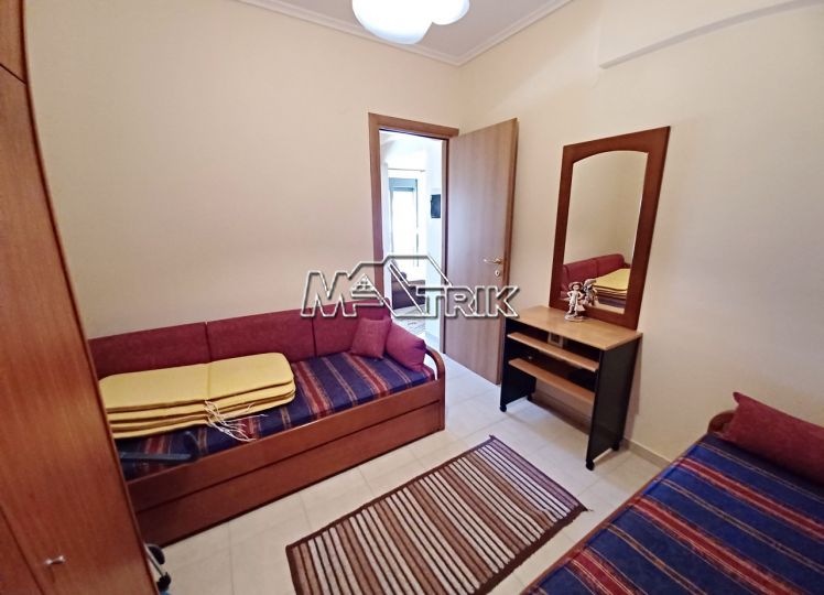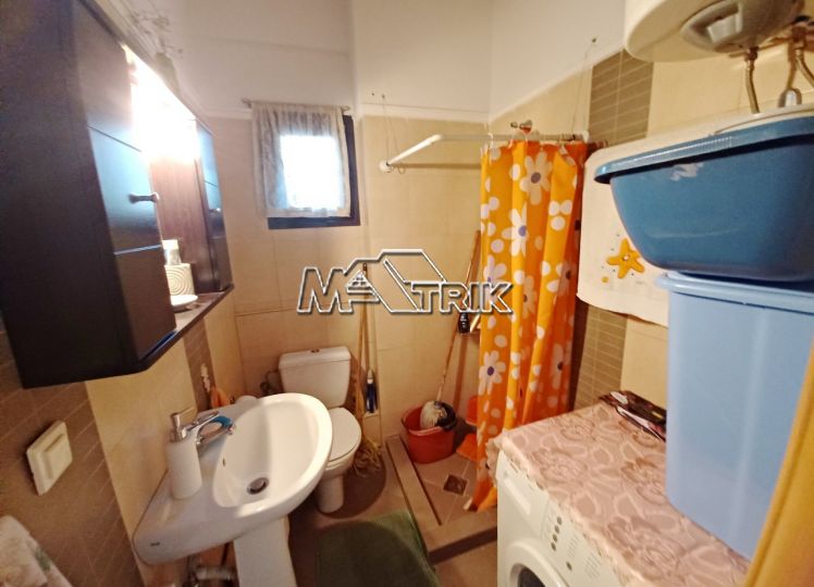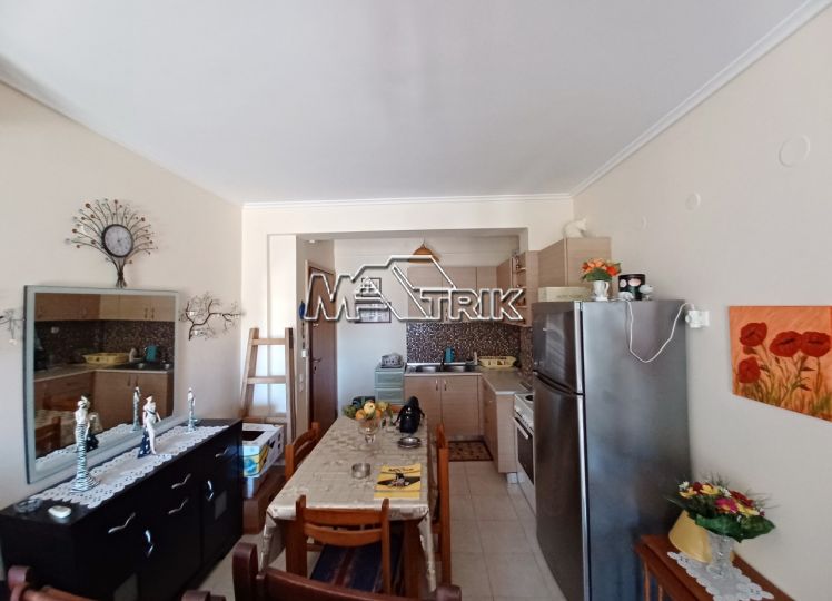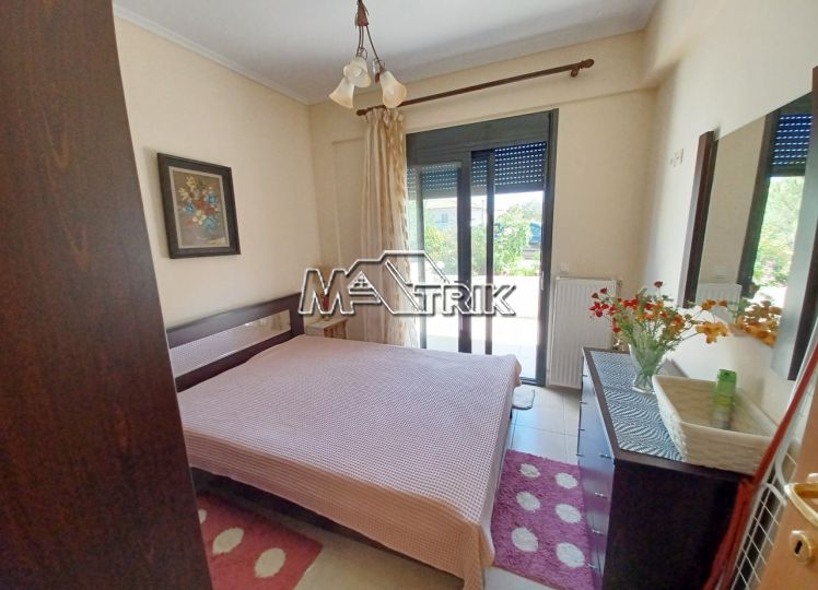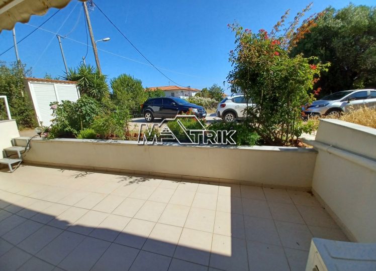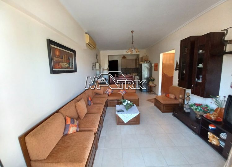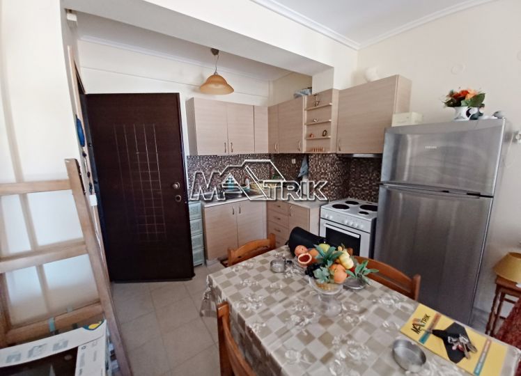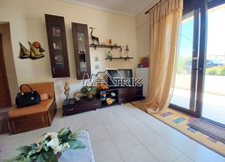 Psakoudia, ground floor apartment, 66 sq m, into the village, 300 meters from the beach. The apartment consists of 1 living room-kitchen, 2 bedrooms and 1 bathroom. It has tiled floors, aluminum window frames with double glazing, bathroom with shower, 1 air conditioner, small storage room. It is corner with an open view, easy parking and is located into the village 300 meters from the beach next to the local market and the local taverns. The furniture present it is also available.