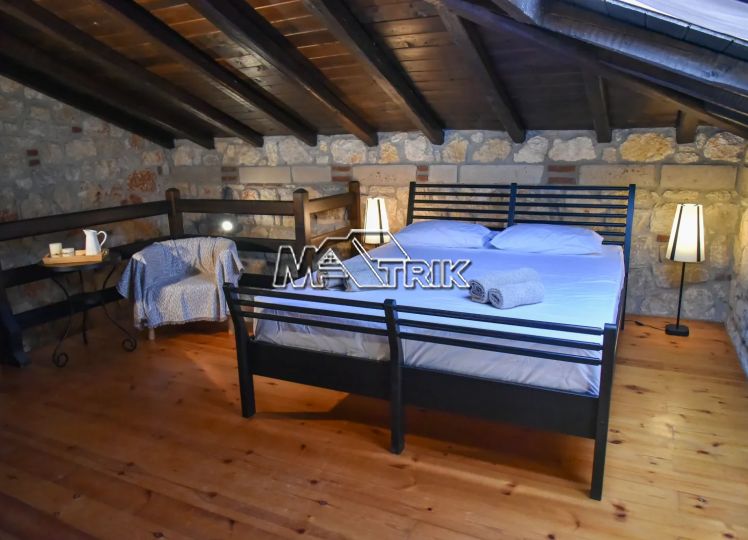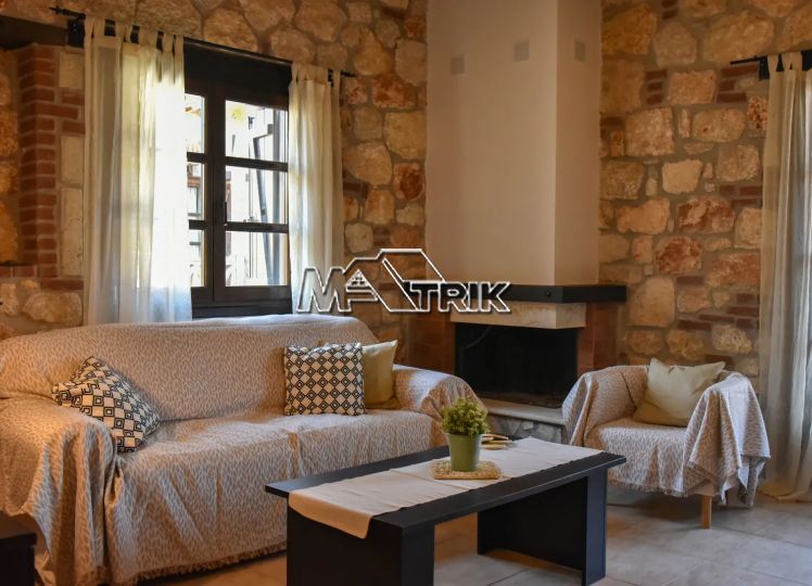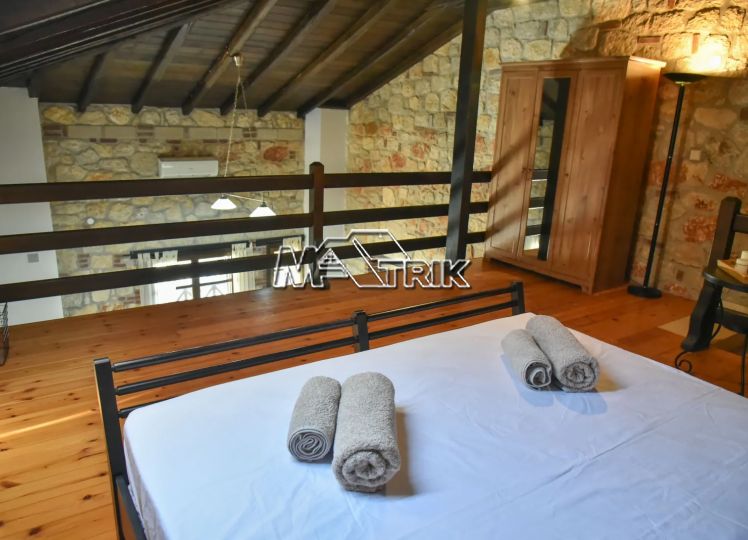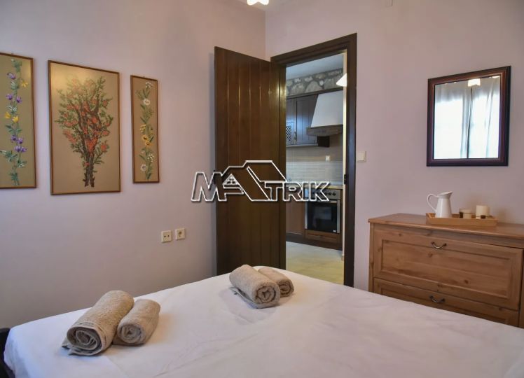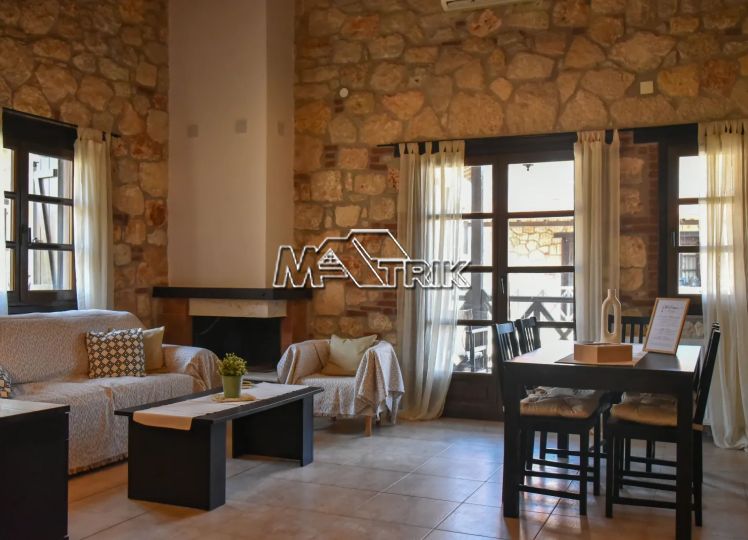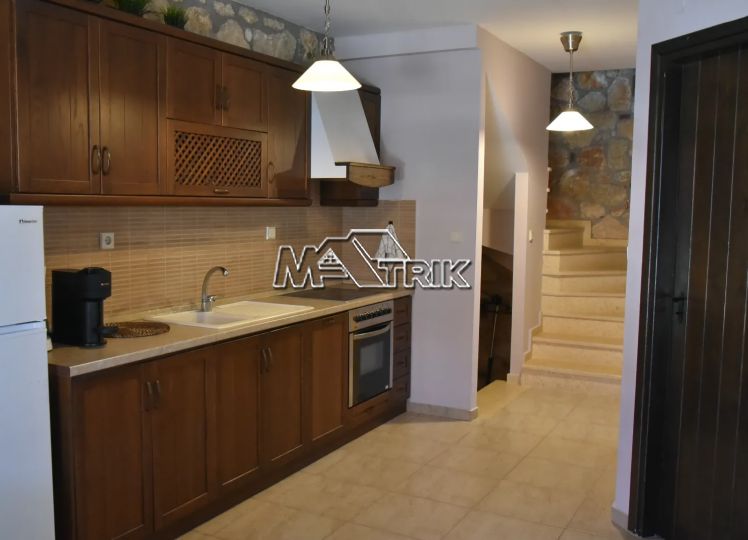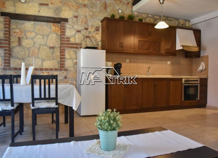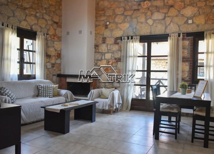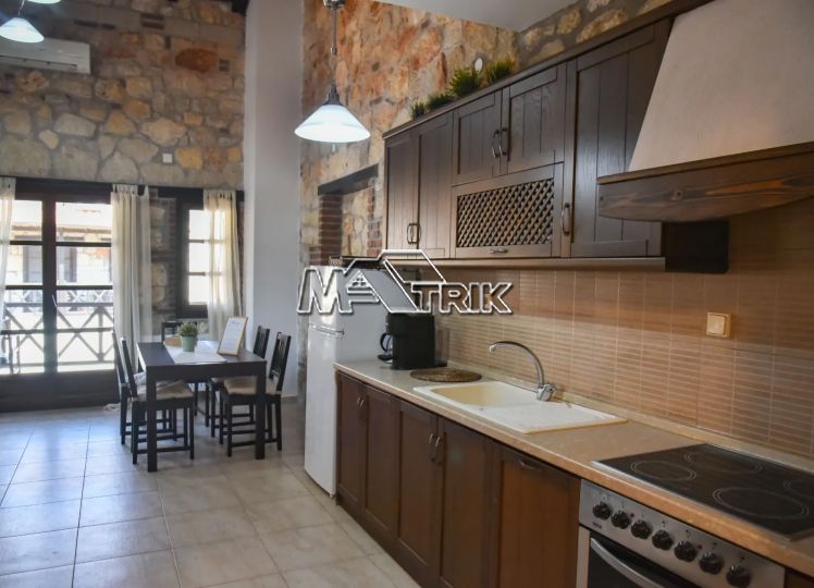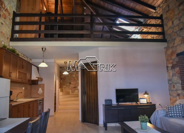 Psakoudia, 72sq.m. loft-type apartment, on the 2nd floor, of luxurious construction and of excellent aesthetics, within a well-maintained residential complex in a quiet area. It is approximately 600m from the market, restaurants and cafes in the area and 400m from the beach. The property consists of a large living room-kitchen area, one bedroom and one bathroom with shower and window as well as an additional room on the upper level (loft). The apartment has floors with quality tiles on the 1st level and wood on the 2nd level, PVC window frames in wood color, fireplace, two air conditioners, individual heating, stone cladding inside and out, quality wood in selected parts of the house, small storage room for the burner as well as a comfortable balcony of approximately 8sq.m. with a view. The apartment is fully functional and in excellent condition. It is a first-class choice as a holiday home as well as for tourist development, offering a very respectable return on capital.