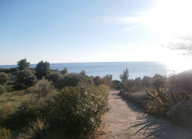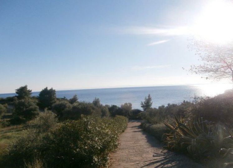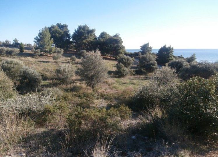 Chalkidiki, Vatopedi. A plot of 13240sqm, first on the beach with an unlimited panoramic view, with 45m frontage, in a residential area with permission to build either a housing complex or a hotel. The plot is inclining and each divided part has a panoramic and unlimited view to the sea.