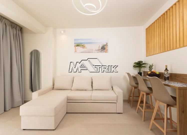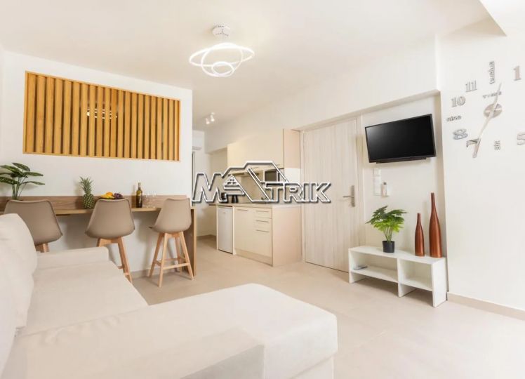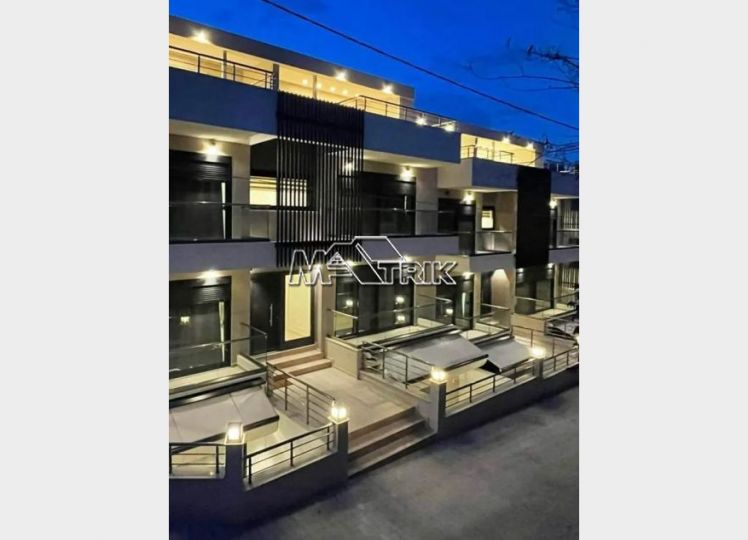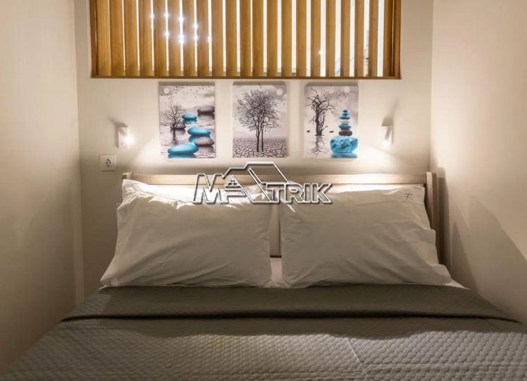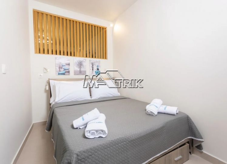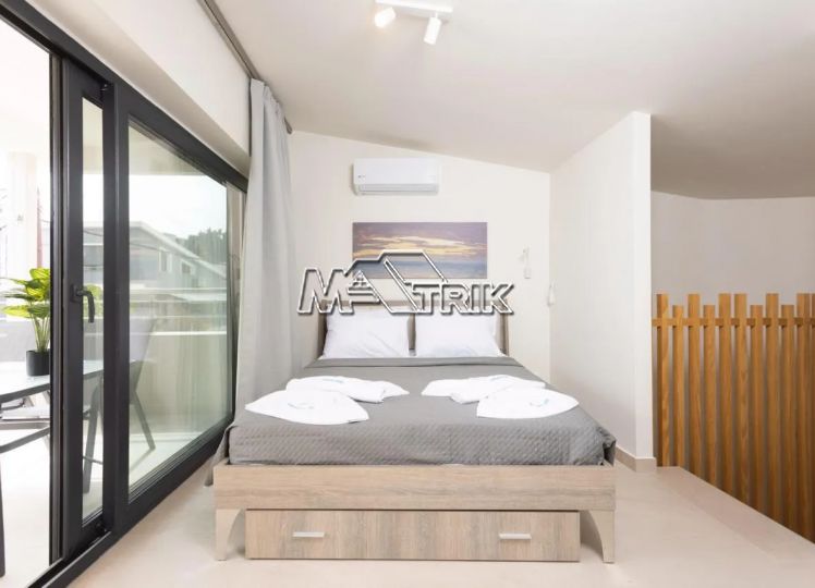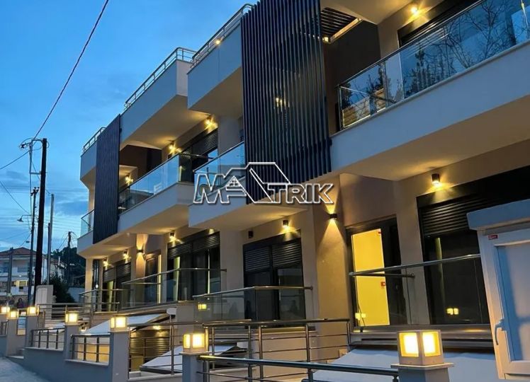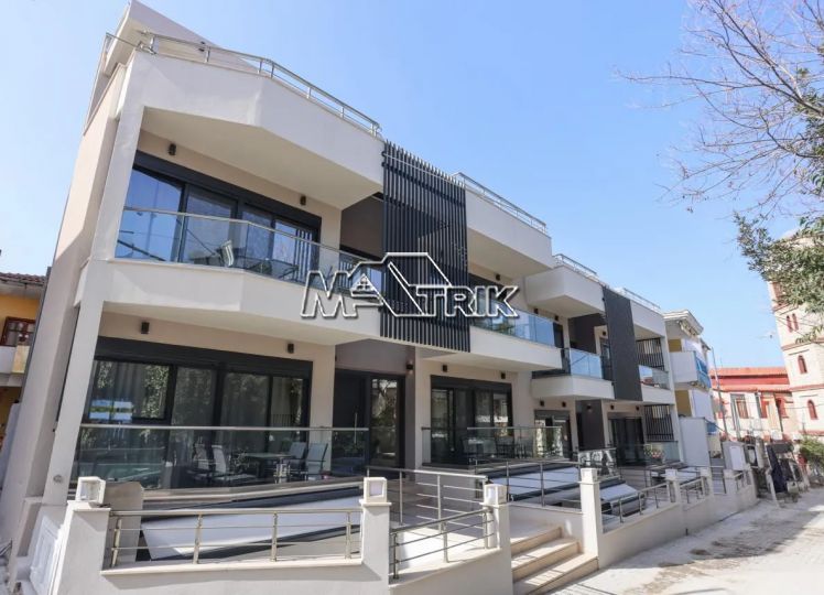 Chalkidiki, Pefkochori, apartment complex of 240 sqm on a plot of total area of 252 sqm. It consists of 8 bedrooms, 8 living rooms and 8 bathrooms. In details: 2 semi-basement studios of 30 sqm, 2 ground floor studios of 35 sqm and 2 maisonettes of 50 sqm each, consisting of two bedrooms each. It has aluminum sliding window frames with double glazing and nets, tiled floor, security doors, twelve a/c, awnings on each balcony, private parking, as well as it is fully furnished and equipped with all electrical appliances and full hotel equipment. It is located in the heart of Pefkochori, a breath from the local market but also the restaurants and its distance from the sea is 300m.