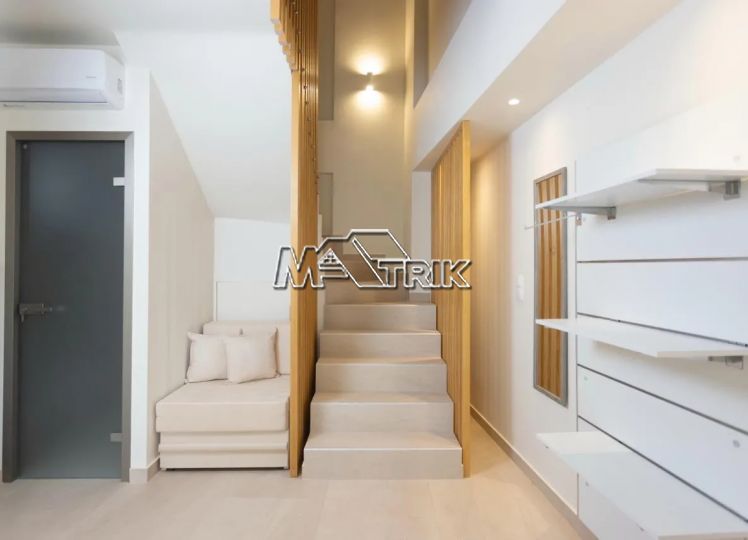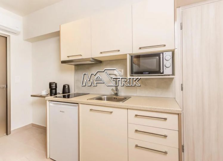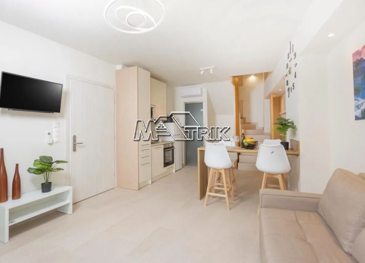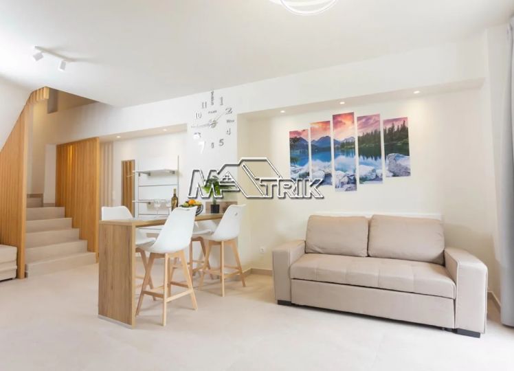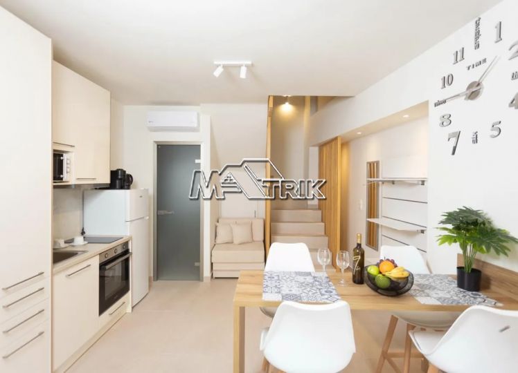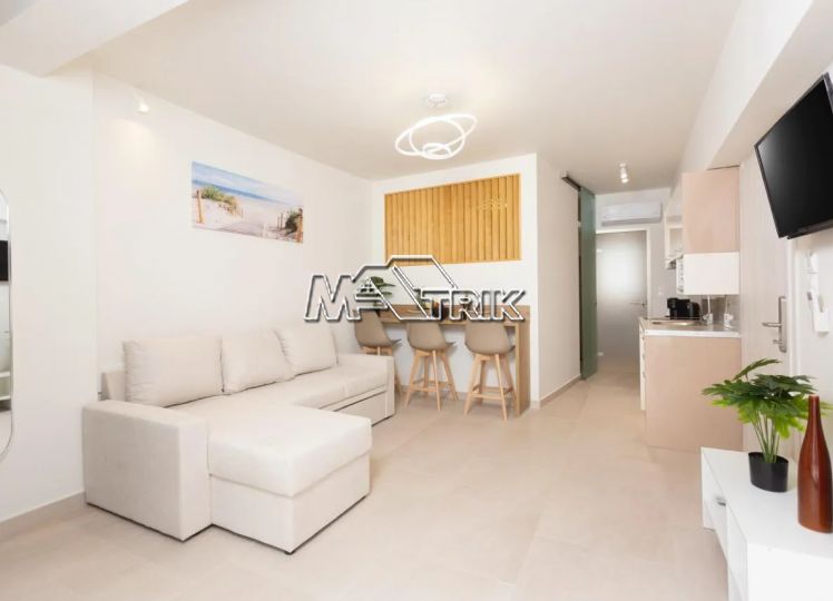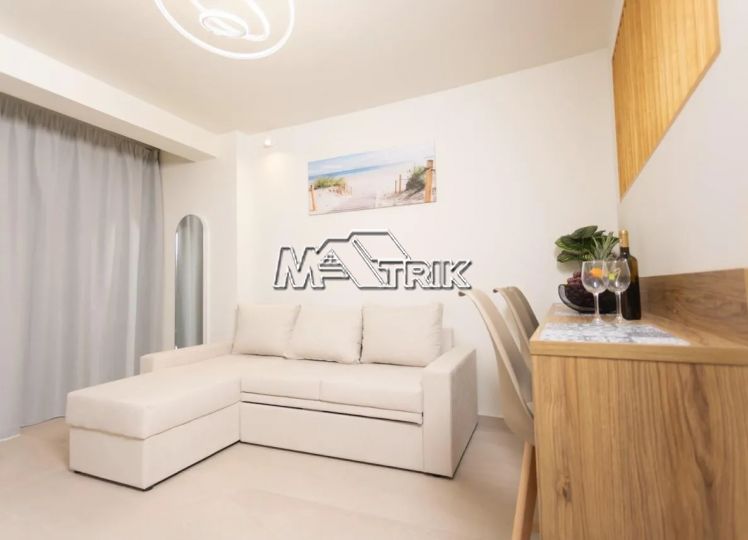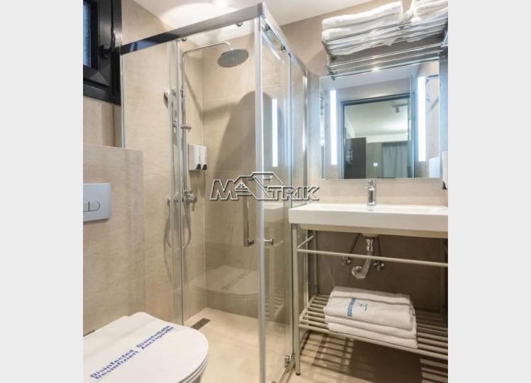 Chalkidiki, Pefkochori, apartment complex of 240 sqm on a plot of total area of 252 sqm. It consists of 8 bedrooms, 8 living rooms and 8 bathrooms. In details: 2 semi-basement studios of 30 sqm, 2 ground floor studios of 35 sqm and 2 maisonettes of 50 sqm each, consisting of two bedrooms each. It has aluminum sliding window frames with double glazing and nets, tiled floor, security doors, twelve a/c, awnings on each balcony, private parking, as well as it is fully furnished and equipped with all electrical appliances and full hotel equipment. It is located in the heart of Pefkochori, a breath from the local market but also the restaurants and its distance from the sea is 300m.