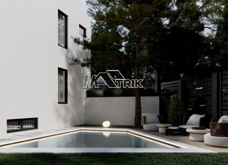 Chalkidiki, Polychrono, luxurious detached house of 162 sqm on a plot of total area of 186 sqm. It consists of 4 bedrooms (2 masters), living room- kitchen and 4 bathrooms. It has aluminum sliding window frames with double glazing and nets, tiled floor, armorized door, private pool, smart a/c system, solar water heater, photovoltaic panels, storage room, cctv and alarm system, large balconies front and rear 2x14sqm, two parking spaces for exclusive use as well as an exclusive yard 85sqm.. It is extremely bright and airy, it is fully equipped as a smarthome, it is located in a particularly strategic and quiet point and its distance from the sea is 400m. With this one, there is another one with the same characteristics and price, as well as two more of the same sqm but on a plot of 224sqm with a price of 650,000 euro.