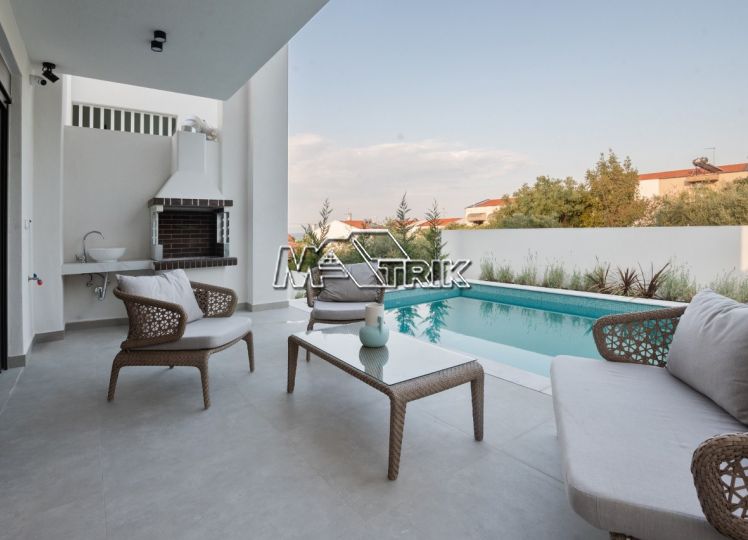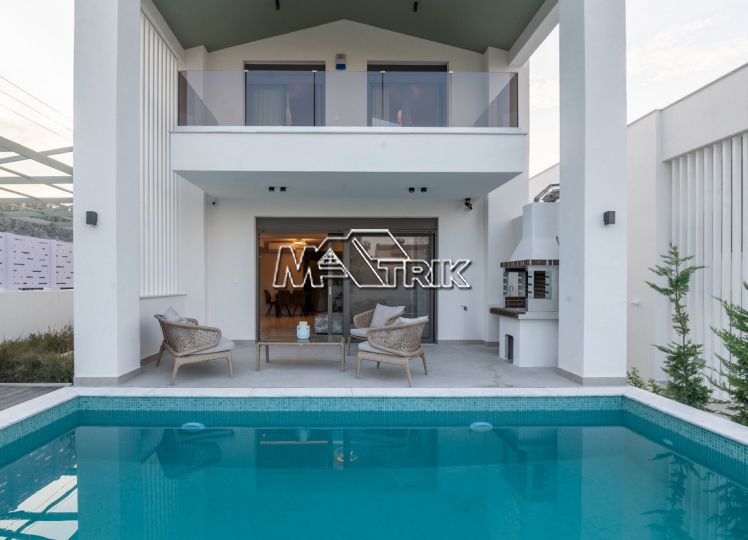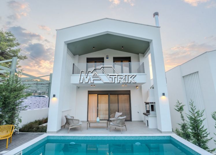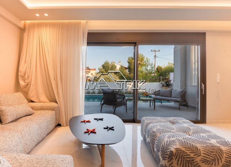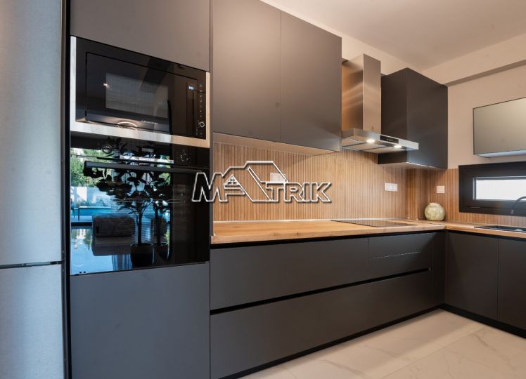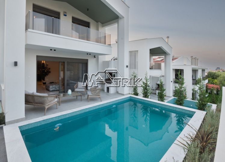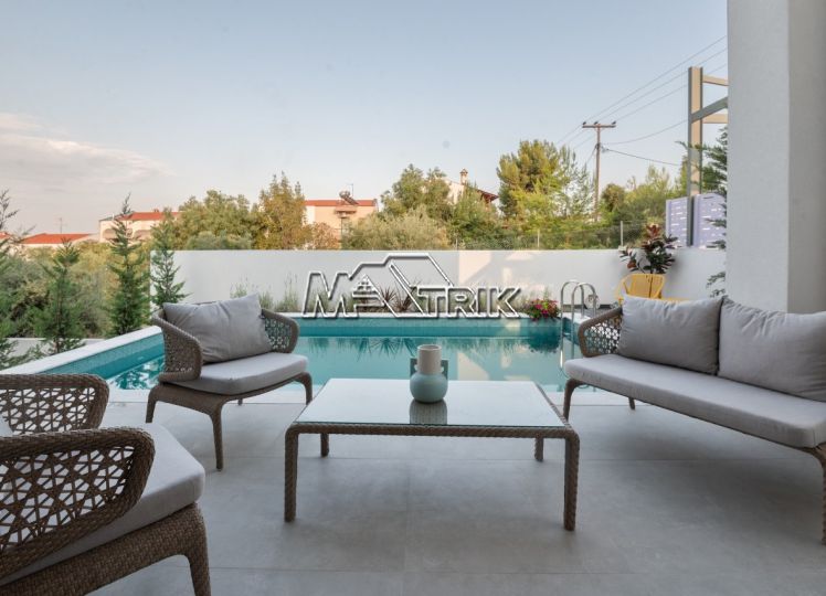 Chalkidiki, Polichrono newly built 3-level maisonette of 195 sqm with a swimming pool. The property consists on the ground floor of a large living room - kitchen and a bathroom with a shower. In the basement three master bedrooms and a storage area, and on the first floor two bedrooms and a dressing room. It has aluminum window frames with retraction and double glazing with nets, new type tiles with underfloor individual heating, a/c in every room and solar heater. It also has alarm and cctv , outdoor bbq, about 70sqm yard of exclusive use as well as one parking space. The distance from the sea is 250m, and 500m from the local market. For sale fully furnished as shown in the photos.