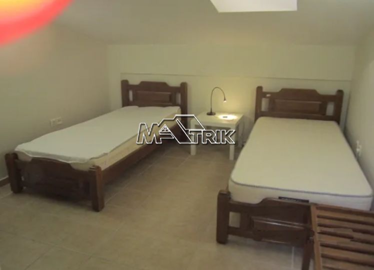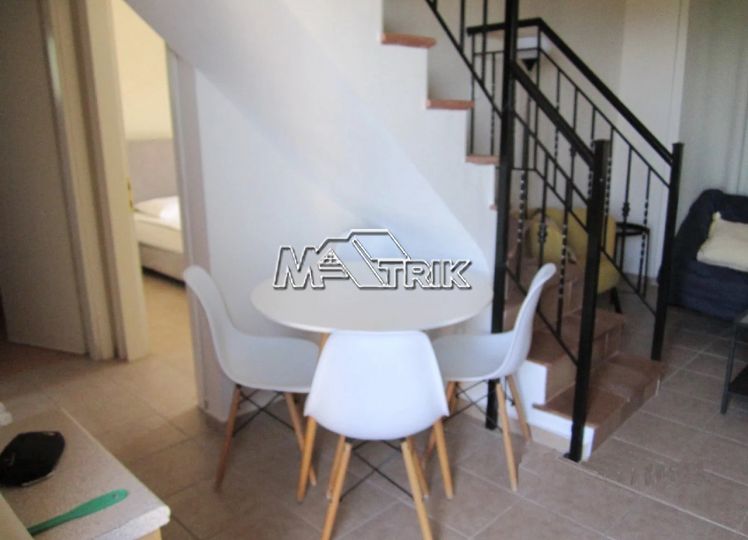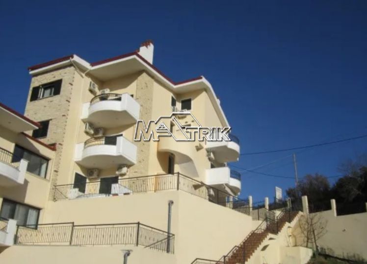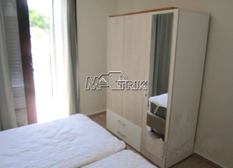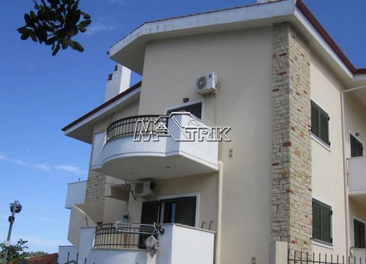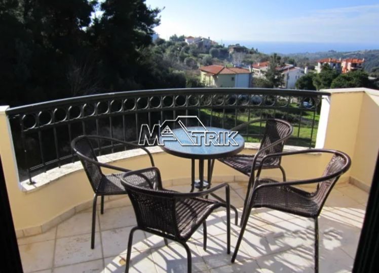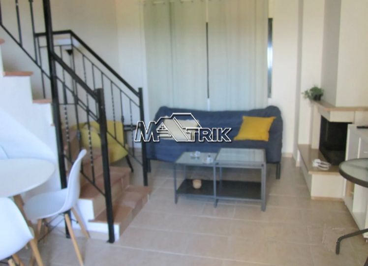 Chalkidiki, Agia Paraskevi two-level corner maisonette, 75 sqm, second floor and attic, with unobstructed view to the mountains and the sea. It consists of 2 bedrooms, a livingroom- kitchen and 2 bathrooms. On the first level is the living room-kitchen, one bedroom and a bathroom. On the second level there is one more bedroom and a bathroom. It has aluminum window frames with double glazing, retraction and nets, armored door, tiled floor, three a/c, fireplace and one parking space. The distance from the center of the village is 400m and 3.5 km from the beach of loutra.