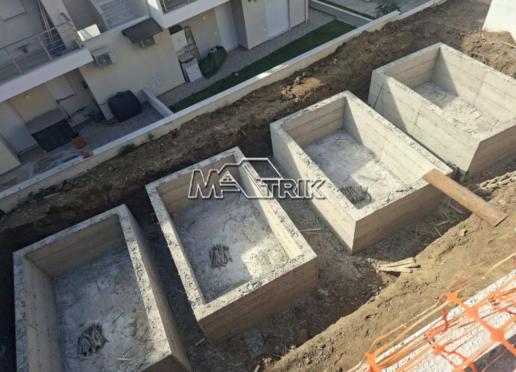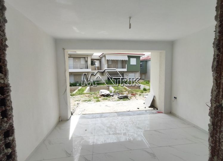 Chalkidiki, Nikiti, under construction apartment located 400m from the sea, ground floor, 50sq.m, in a residential complex with private swimming pool, a private use yard approx. 15sq.m and a private parking space. It consists of one bedroom, an open - plan kitchen-living room and one bathroom. It features aluminum window frames with double glazing, tilt-and-turn windows and mosquito screens, tiled flooring, security door and 2 air conditioning units. Completion of the project is estimated for early June.