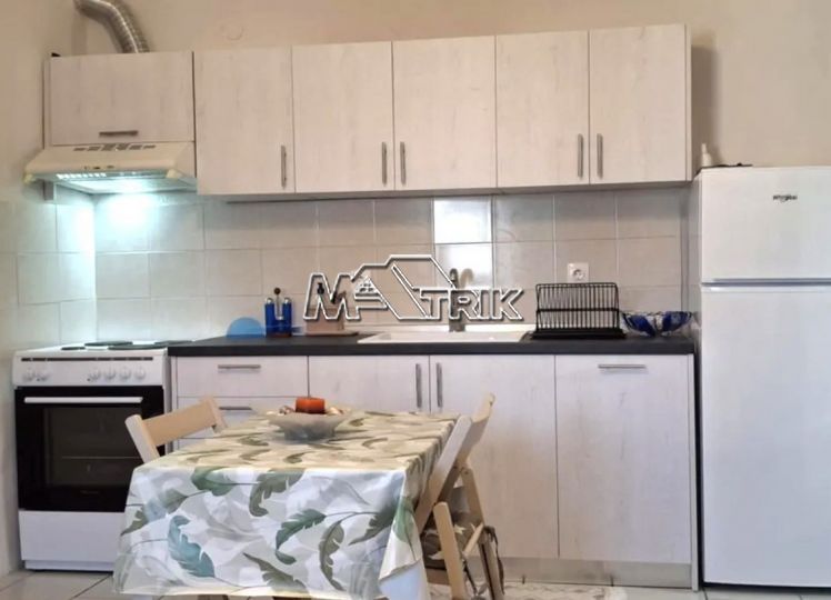 Chalkidiki, Agios Nikolaos, mezzanine apartment 56 sqm, completely renovated in 2025. It consists of one bedroom, living room- kitchen and one bathroom. It has aluminum window frames with double glazing, recoil and nets, tiled floor, security door, one a/c, individual heating system with oil, two storage rooms, one in the basement of 20 sqm and one outside, two parking spaces for exclusive use, as it is fully furnished and equipped with all electrical appliances. It is located in a particularly quiet and noble point within the village and its distance from the nearest beach of Trani Ammouda is 2km.