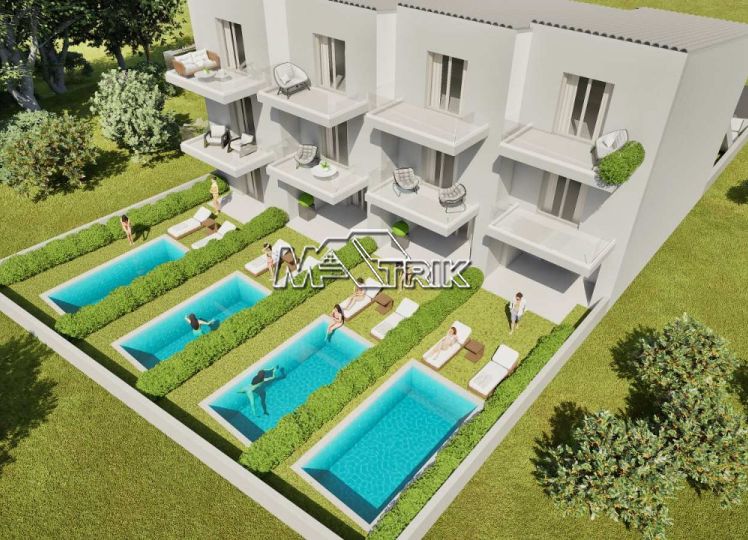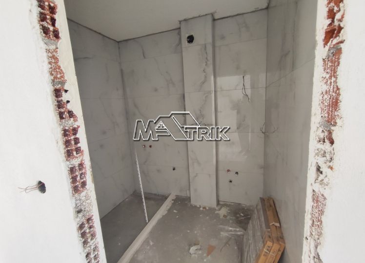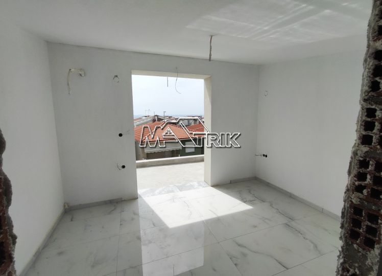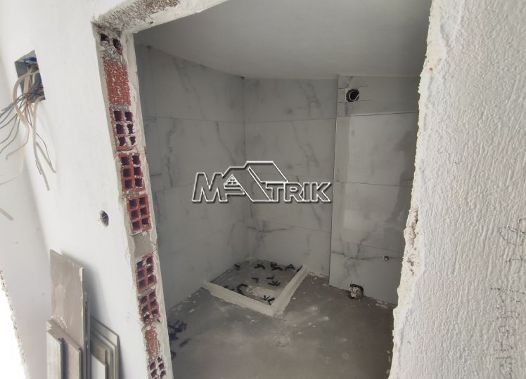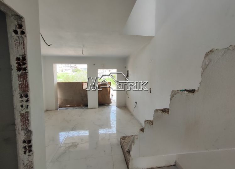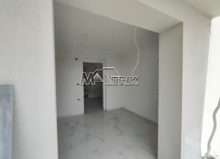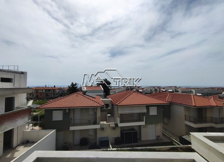 Chalkidiki, Nikiti – Under-construction maisonette, 74 sqm., in a residential complex 400 meters from the sea. On the first floor, it consists of an open-plan living room and kitchen, a bathroom, and one bedroom. On the second floor, it consists of one bedroom, a loft, and one bathroom. It features tiled flooring, aluminum window frames with tilt-and-turn functionality, a security door, and 3 air conditioning units. Completion of the project is estimated for early June.