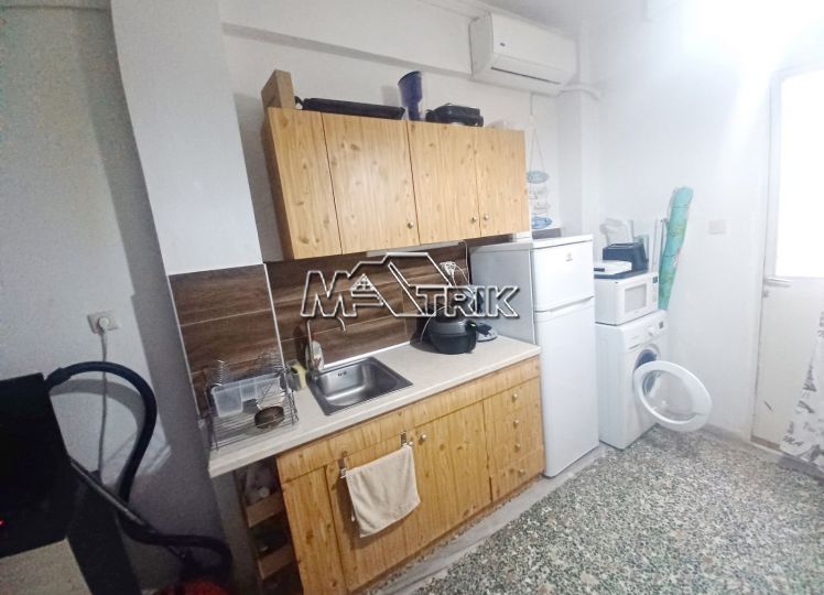 Chalkidiki, Nea Plagia, mezzanine apartment 47 sqm, in a residential complex. It consists of one bedroom, living room- kitchen and one bathroom. It has aluminum window frames, mosaic and tiled floor, one a/c, as it is fully furnished and equipped with all electrical appliances. It is corner and particularly bright, it is located within the village and its distance from the sea is 200m.