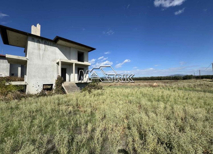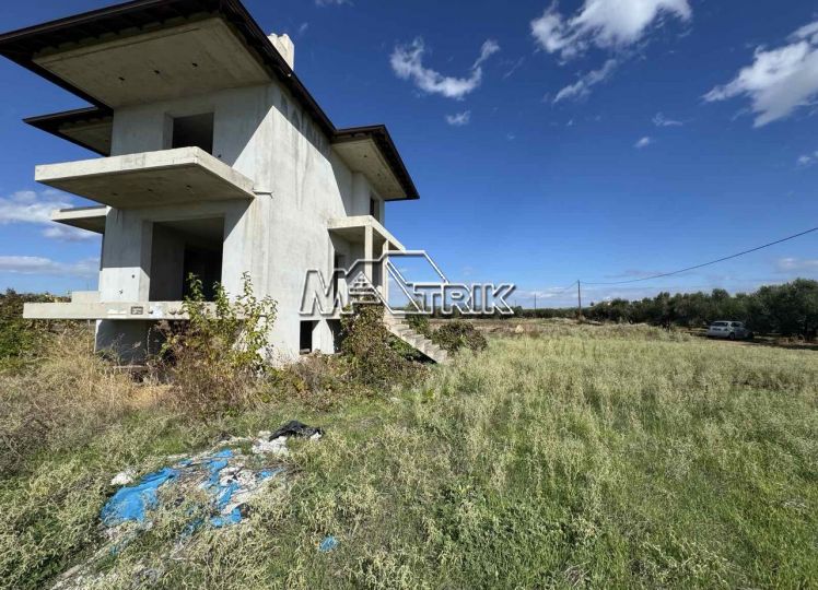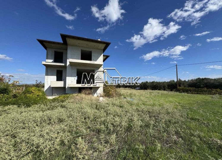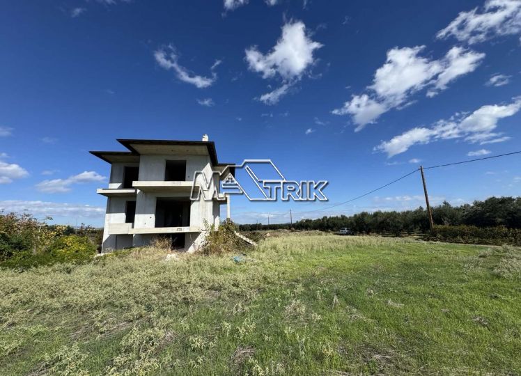 Nea Playa, unfinished detached house, on three levels and of 190 sq.m., within a privately owned plot of 2000 sq.m., 600m from Nea Playa and 1200m from the sea. The 1st level (semi-basement) has a bathroom, a kitchen-living room, one bedroom and storage room. The 2nd level also has a bedroom, a kitchen-living room and a bathroom. On the 1st floor there are three bedrooms with balconies and a bathroom. The detached house has a tiled roof and infrastructure for electrical and plumbing installation. In its current state, the interior spaces can be configured according to the needs of the new owner. The property is built with a legal building permit, free of any legal encumbrances and can be sold with a final contract.