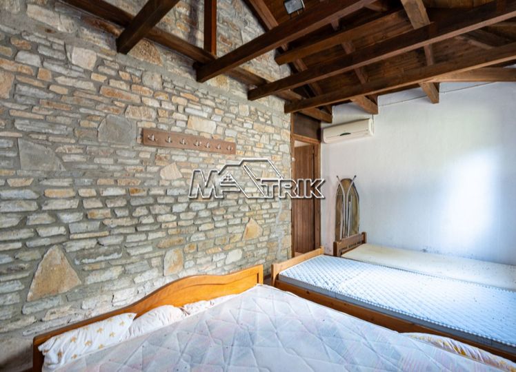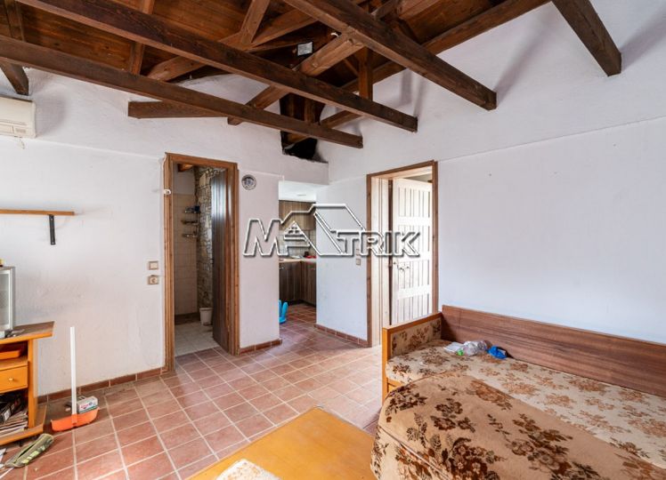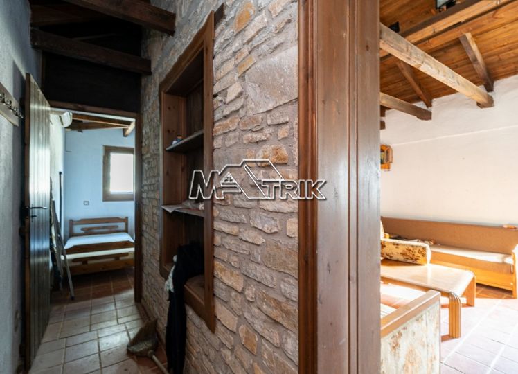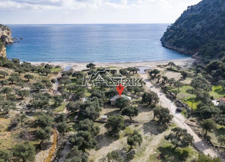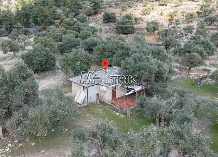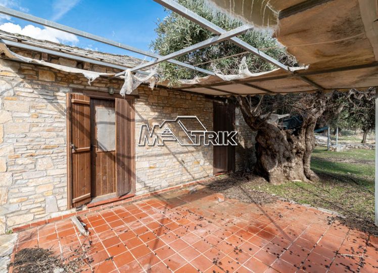 Thassos, Livadi Beach, Stone detached house 50 sq m, on a divided parcel of 1100 sq m, 135 meters from the sea and 17 km from Potos Village. The property consists of a comfortable living room, separate kitchen, a large bedroom and a bathroom. It has air conditioning, tiled floors, wooden window frames with double glazing, bathroom with window. It is located in the southern part of the island, in a wonderful quiet spot 17 minutes drive from the village of Potos. The furniture shown in the photos is included in the price.
