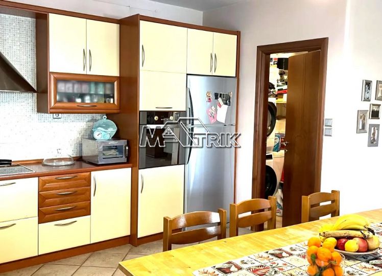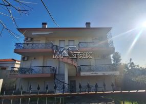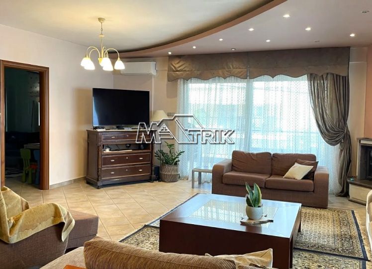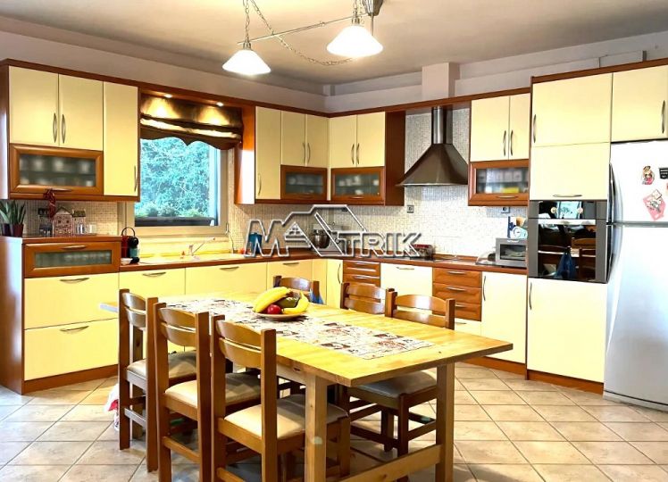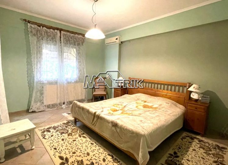 Nea Moudania, bright and corner 1st floor apartment of 192 sq m, part of a detached house within a plot of 420 sq m, in a quiet neighborhood, 500 m from the center and 600 m from the sea. It consists of four bedrooms, a very large living room – kitchen area, two bathrooms and a WC. It has an armored front door, quality tiled flooring, Schuco aluminum window frames with thermal bridge, electric roller shutters in the living room, energy efficient fireplace with air ducts to the rooms, air conditioning, individual heating, water pump and 1500 liter water tank, three-phase electricity and UPS 30KVA, 200 liter solar water heater and insulated terrace (in 2021). The apartment also has a wide balcony and a parking space within the plot. The property is in excellent condition. It is currently leased until the end of 2025.