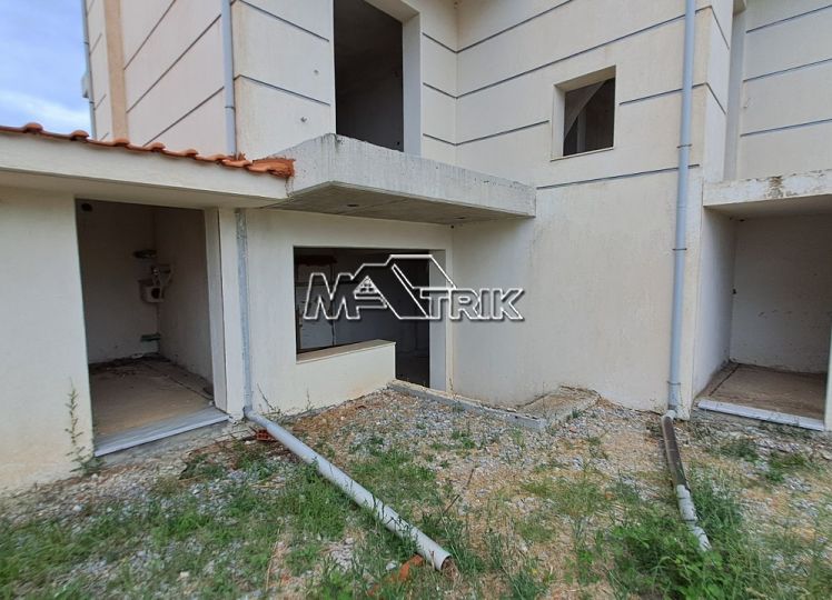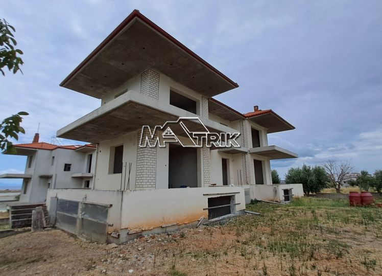 Chalkidiki, Agios Mamas, unfinished three-level maisonette of 203 sqm on a plot of total area of 1000 sqm, which can be configured as two separate apartments of 57 sqm each, each has two bedrooms. There is also a semi-basement of 88 sqm for storage use with all the extraordinary details in place. It is located in a very quiet location and its distance from the sea is 3km. Along with this maisonette, exactly next to it, another one is available with exactly the same characteristics and dimensions, which are also sold together at the price of 420,000 euros.