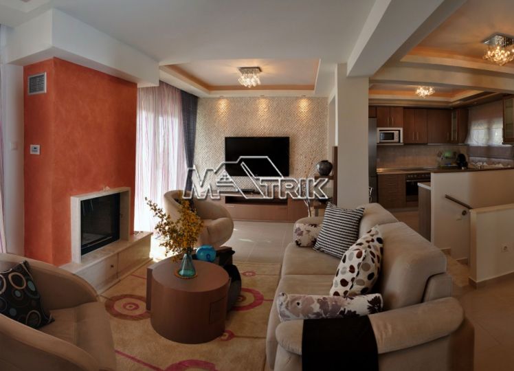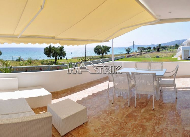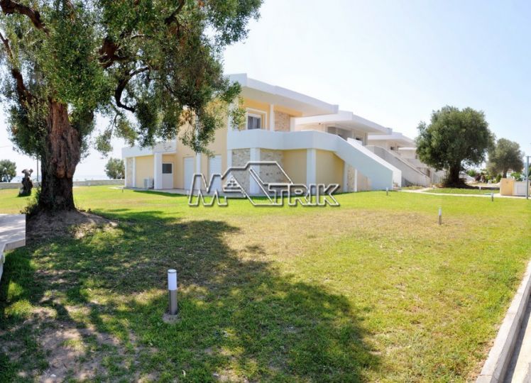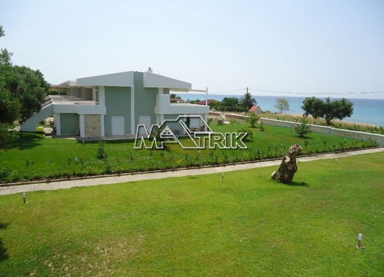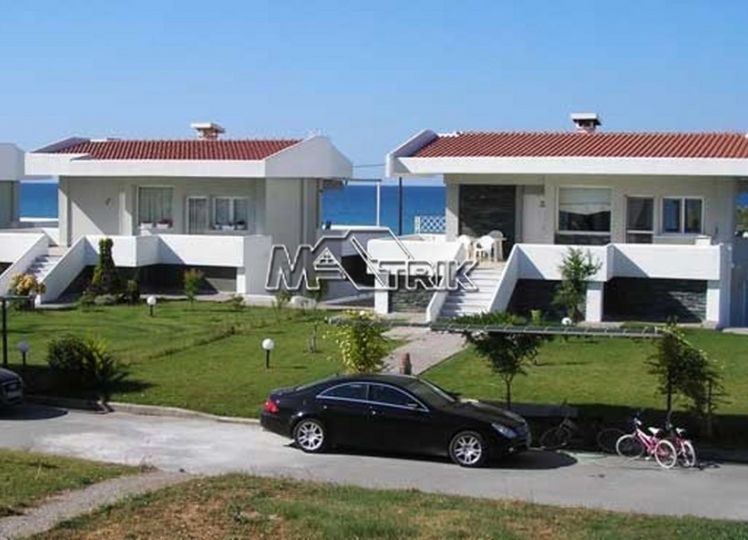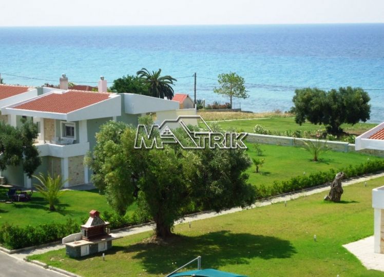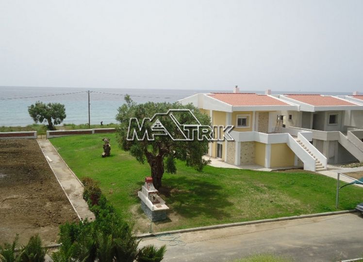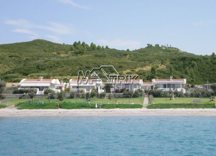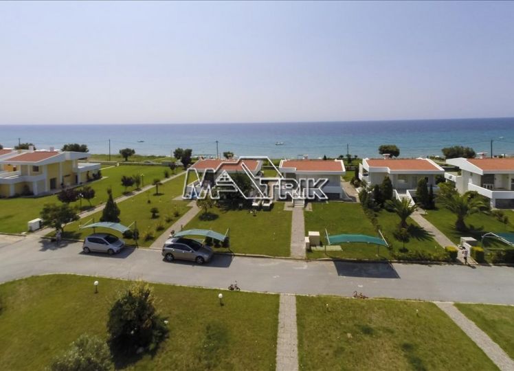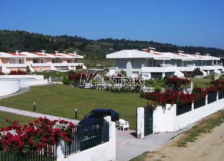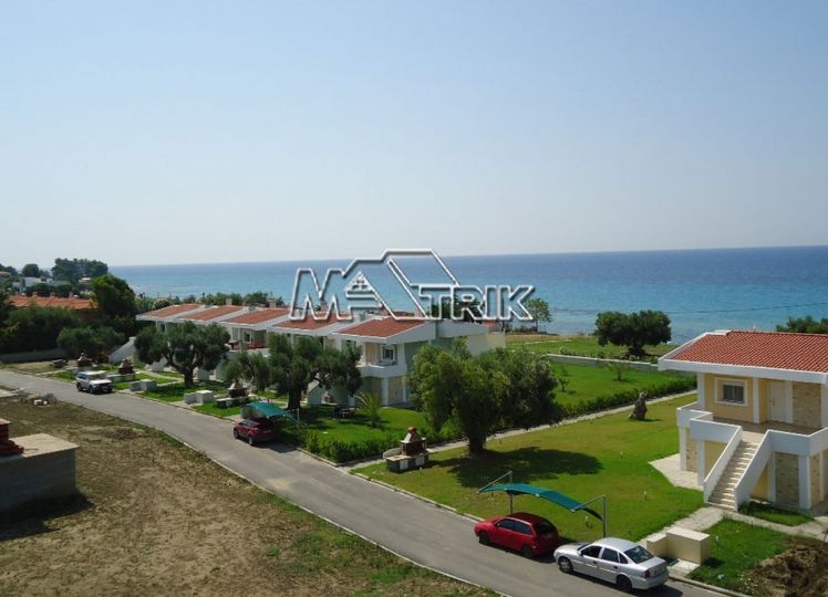 Chalkidiki, Nea Skioni, two level detached houses of 165sq.m. There are part of a well maintained house complex in front of the beach. Each house has private yard from 500sq.m. up to 1000sq.m. On the ground florr each house consists of three or four bedrooms, one bathroom and a storage room of about 20sq.m. On the 1st floor, which has separate staircase from the yard, there is a big living room plus kitchen area and one more bathroom. There is also a large balcony with mostly open views (not all houses have open sea view). There are of excellent construction, covering all contemporary building standards. The house complex consists of four lines of houses. At the 1st line, with ample open sea views, right in front of the beach, there are two available houses at the price of 1500000 euro. At the 3rd line, with partial views, the are several houses available, from pieces starting from 450000 euro up to 700000 euro, depending on the provided view and the size of its yard. The houses at the 3rd line by the sea are semi-finished. The walls and fames are in place and the constructor is giving the customer the choice of choosing the titles, doors, kitchen furniture, bathrooms, e.t.c. out of a wide variety that the constructor is providing. The houses will be delivered fully finished and equipped within two to three months from the date of the agreement. The prices are referring to fully complete houses.
