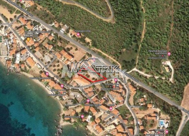 The plot has building factor 0.6 (tiered),builds 900 sqm. The plot is very close to the beach next to the local market and the taverns of the village and is ideal for rented rooms or/and for private home.