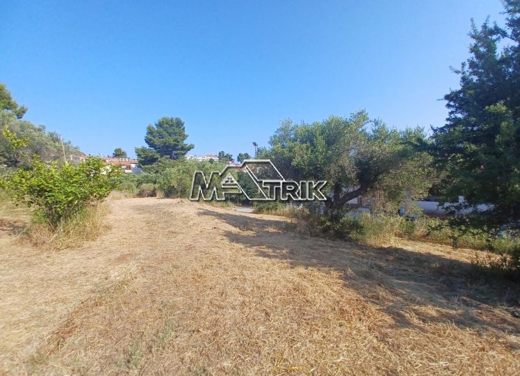 Chalkidiki, Agia Paraskevi (spa thermal baths ). Corner plot 1424 sqm, sloping, with sea view, 30meters frontage to asphalt road, situated 100 meters from the beach.