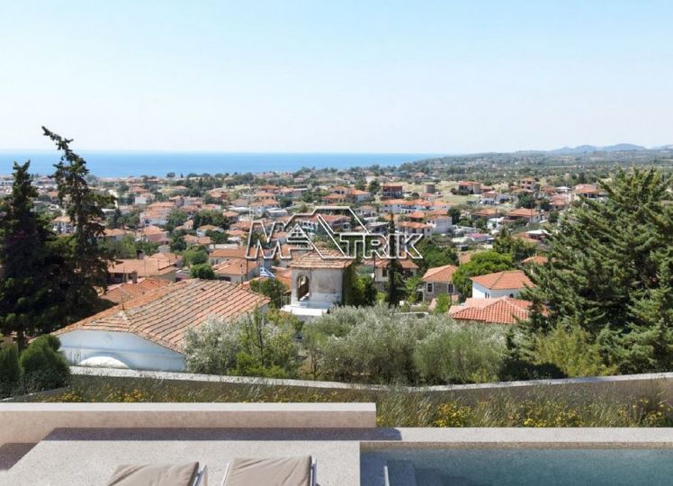 Plot of 3961 sq.m., in Ano Nikiti, in a prominent position, with unobstructed vieww of the sea and the wider area. The plot is 1200m from the beach, 250m from the center of the traditional settlement of Ano Nikiti and 550m from the main street, the large supermarkets and the local market. It has a building coefficient of 0.4 with 60% coverage. There is a valid building permit for 1850 sq.m. The plot is sloping and has facade on three streets (36m – 57m and 75m respectively). The original architectural plans were for the construction of 12 villas which can be differentiated accordingly.